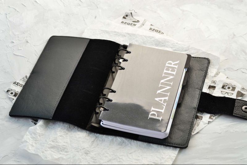 Переглянути подробиці та купити можна тут: https://plannermania.com.ua/shop/leather-planner-grey-personal Можливо відео. Блокнот/планер/щоденник в обкладинці з натуральної шкіри. Формат Personal (для листів 9,5 х17 см). Шкіра класичного сірого кольору, з чорним виворотом. П а р а м е т ри ✔ Матеріал обкладинки: натуральна шкіра. ✔ Підходить для листів: 9,5 х17 см (формат Personal). ✔ Кільцевий механізм: 6 кілець, діаметр 2 см. ✔ Сторінки: на вибір. ✔ Папір: преміум, 90 г/см. кв. ✔ Кількість аркушів: 100 (200 сторінок). ✔ Додатково: три роздільники з дизайнерського паперу. Сторінки для цього блокнота будуть надруковані спеціально для вас. Є варіанти планера-тижневика (датовані та недатовані), планера-щоденника, також можливі сторінки в точку та в лінію. Напишіть мені перед замовленням і я покажу вам варіанти. Розділювачі виготовлені з дизайнерського картону. Додатково можна придбати ПВХ-конверти на зип-лоці та без нього, пластикові лінійки-закладки тощо. (Див. категорію "Аксесуари"). Обкладинка покрита фінішним водовідштовхувальним покриттям, блокнот упакований у текстильний мішок-пильник. Слідкуйте за нашими новинками в Інстаграм: @planner_mania
