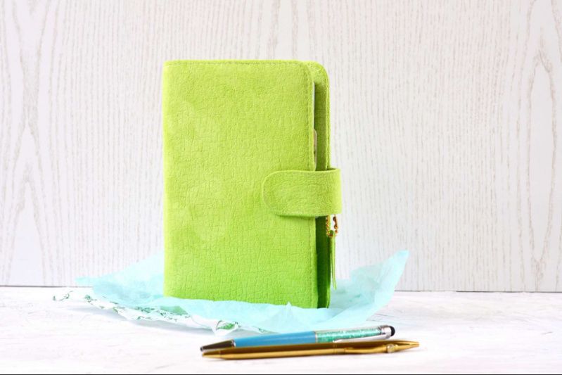 Переглянути подробиці та купити можна тут: https://plannermania.com.ua/shop/planner-suede-green-personal Є відео. Планер-щоденник обкладинці з натуральної замші. Обкладинка планера жорстка. Зверху – м'яка натуральна замша яскравого зеленого кольору, з тисненням. Усередині - натуральна бавовна та замшеві кишеньки. Блокнот закривається на магнітну кнопку. П а р а м е т р і ✔ Розмір обкладинки: 13х18,5 см. ✔ Розмір листів: 10х17 см. ✔ Розмір кілець: 2 см. ✔ Кількість листів: 100. ✔ Петелька для ручки: є. ✔ Кількість роздільників: 3. Сторінки показані лише для прикладу! Я поставлю в блокнот потрібні саме вам сторінки, маю багато варіантів, пишіть. У планер додана кишеня для візитівок та знижкових карток. Додатково ви можете купити планеру лінійку-закладку, конверт на зип-лоці або без нього. Обкладинка легко чиститься звичайною м'якою щіткою. Слідкуйте за нашими новинками в Інстаграм: @planner_mania