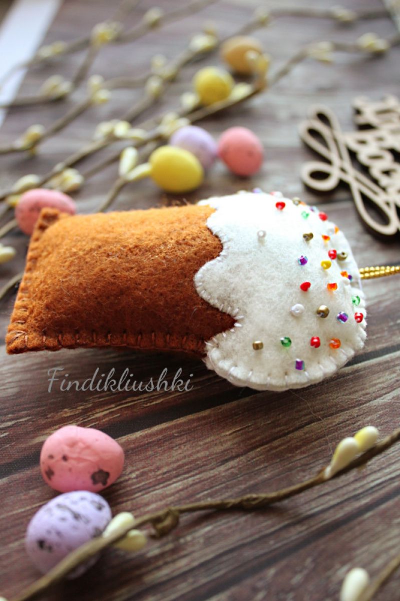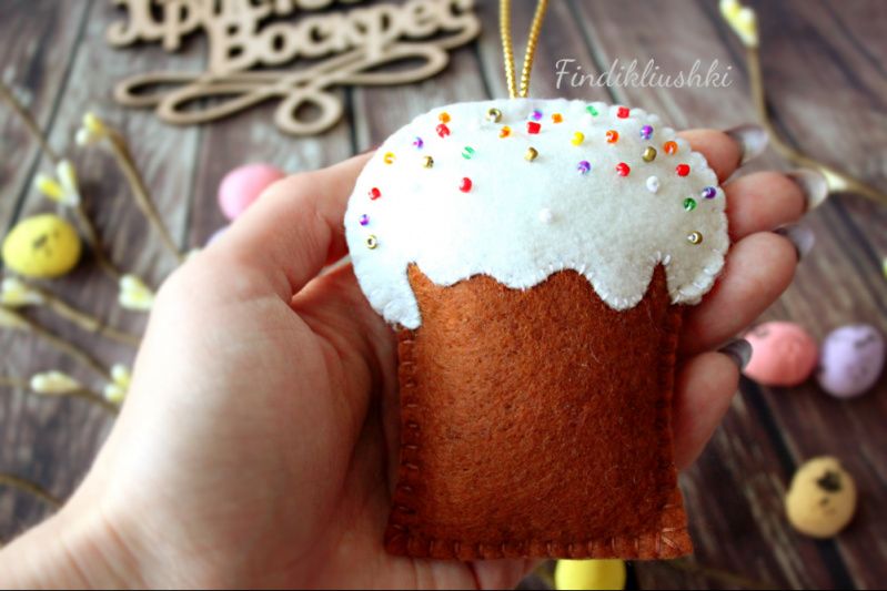 Пропонується підвіска-сувенір у вигляді паски до світлого свята, м'який і теплий, з помадкою і різнобарвним драже-посипкою. Фетровий паску можна використовувати в оформленні пасхального інтер'єру свого будинку, закладу, можна використовувати як подарунок / сувенір до Великодня. Виріб виготовлено з фетру, наповнене холлофайбером, як посипання - різнокольоровий бісер. Розміри: висота 9 см (без урахування підвіски), ширина (низ - 5,5 см, верхівка 8 см) Рекомендації по догляду: особливого догляду не потребує, протирання від пилу пензликом або сухою ганчіркою. Чи не прати, берегти від забруднень. 100% ручна робота. Зроблено з любов'ю)