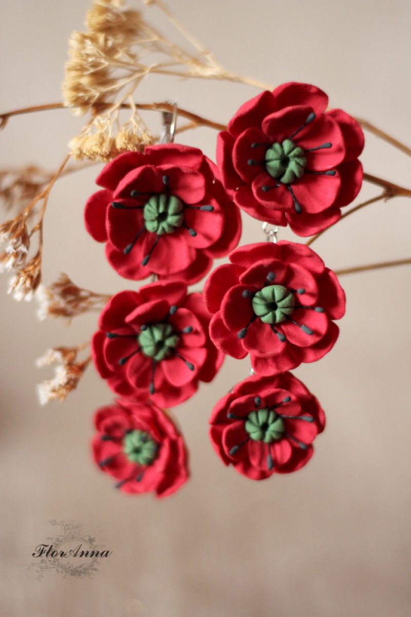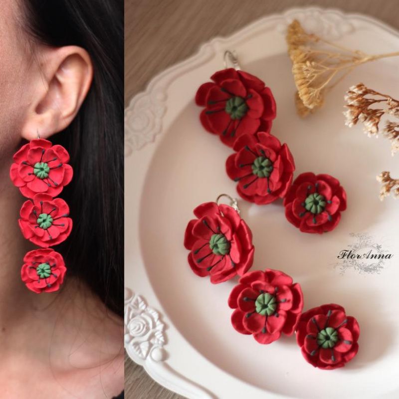 Шикарные и стильные авторские серьги для яркого образа. Каждый цветочек слеплен вручную из японской полимерной глины decoclay.