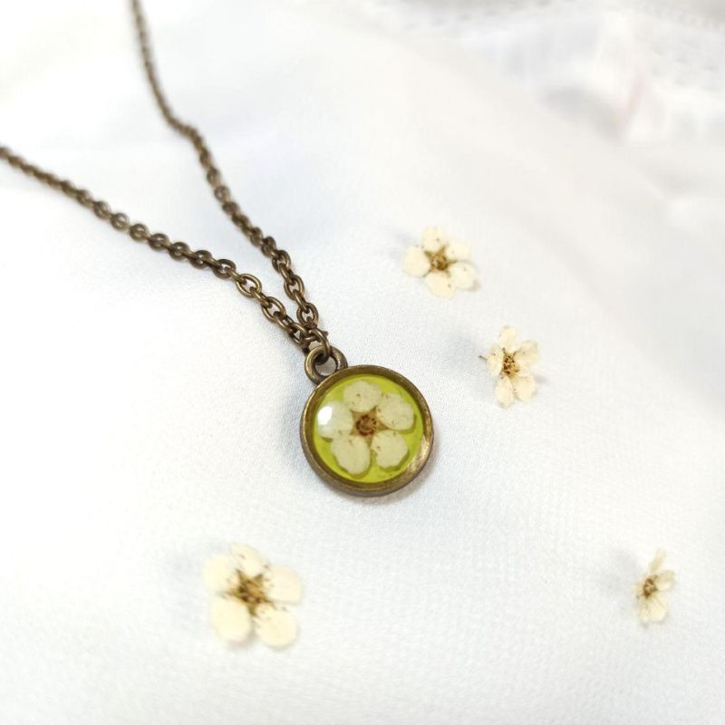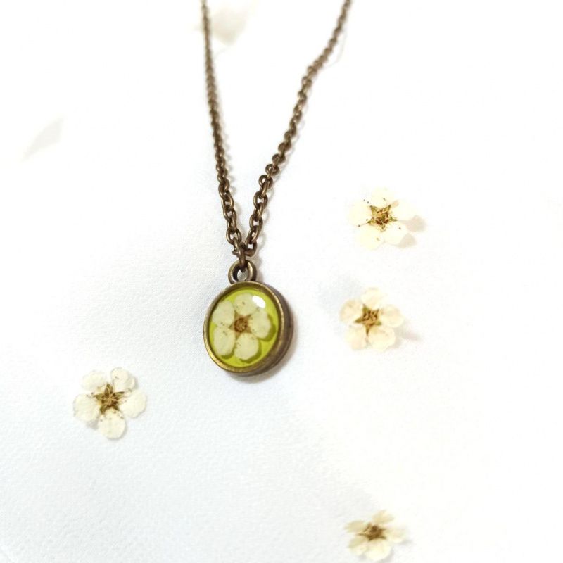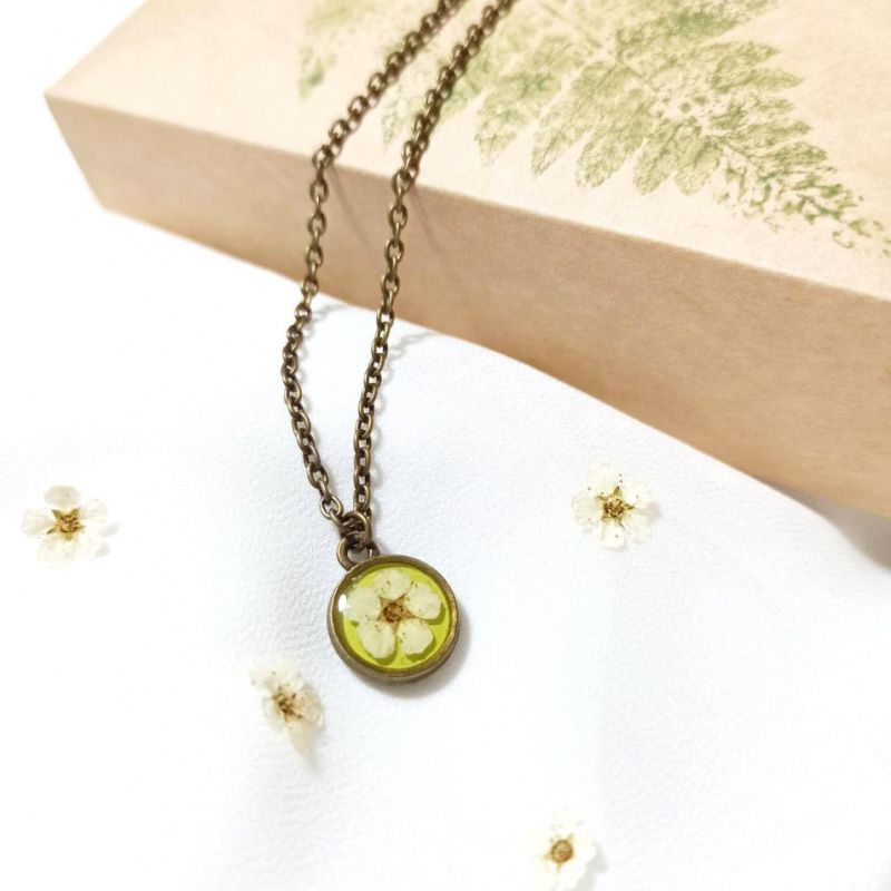 Двосторонній кулон з справжнім квіткою суниці. Кулон з епоксидної смоли з рослинами всередині. Я сама збираю і сушу рослини, мене надихає природа і її краса в мініатюрі. Усередині кожного кулона свій мініатюрний світ, який так приємно розглядати.