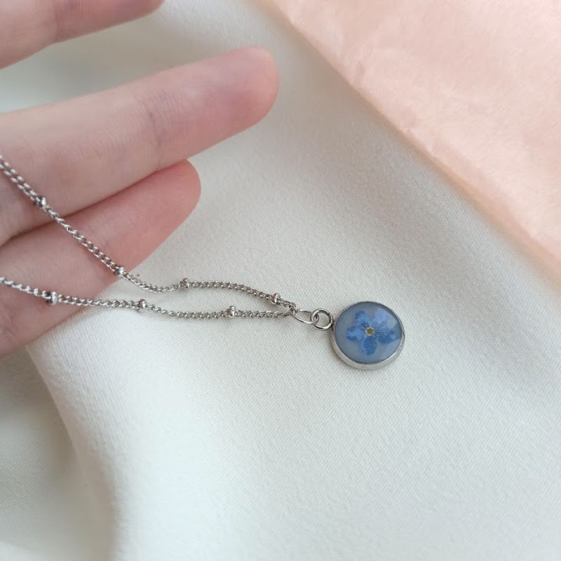 Ніжний кулончик з квіткою незабудки, що символізує любов.