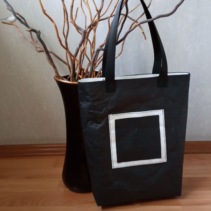 Дуже міцна еко-сумка з чорного біорозкладного нетканого DuPont Tyvek "синтетичний папір".