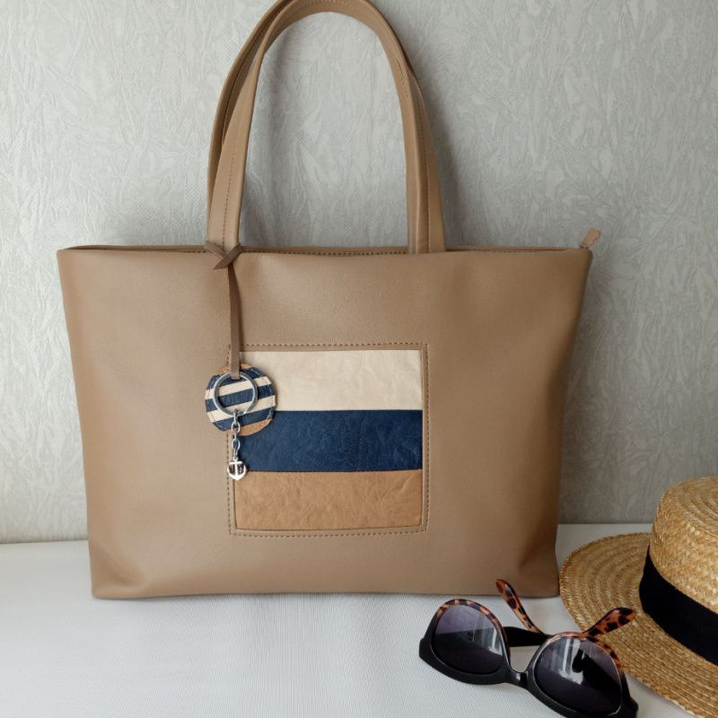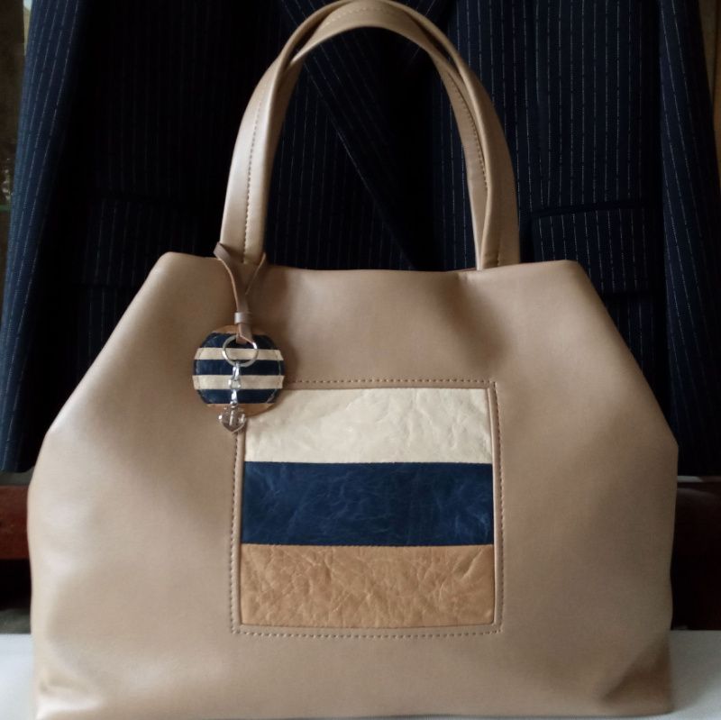 Нова авторська робота - сумка бежева в морському стилі з декором. Підкладка з трьома карманами. Сумка - трансформер завдяки ремешку з карабіном.