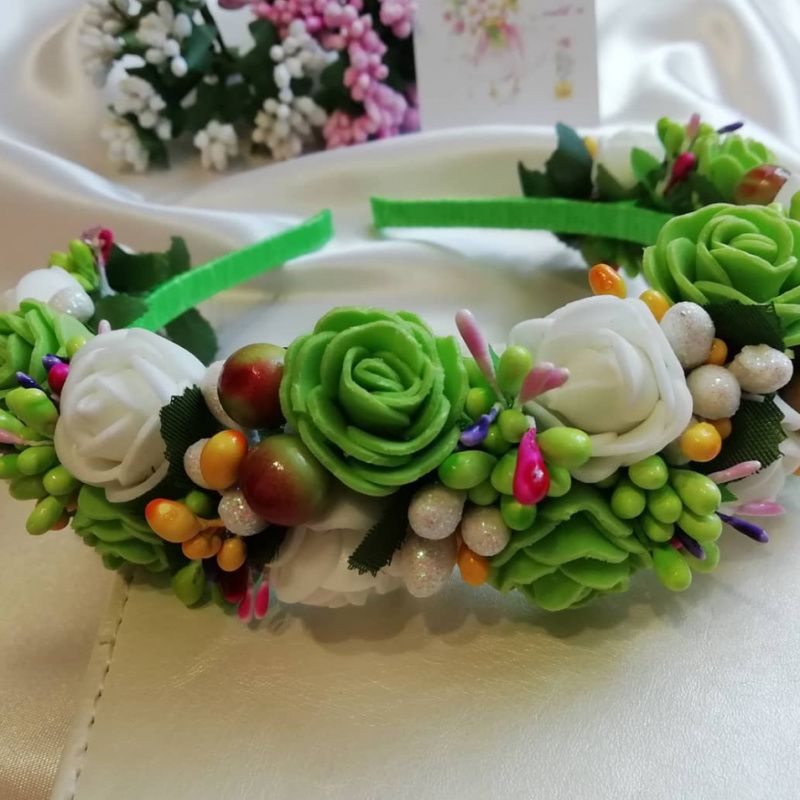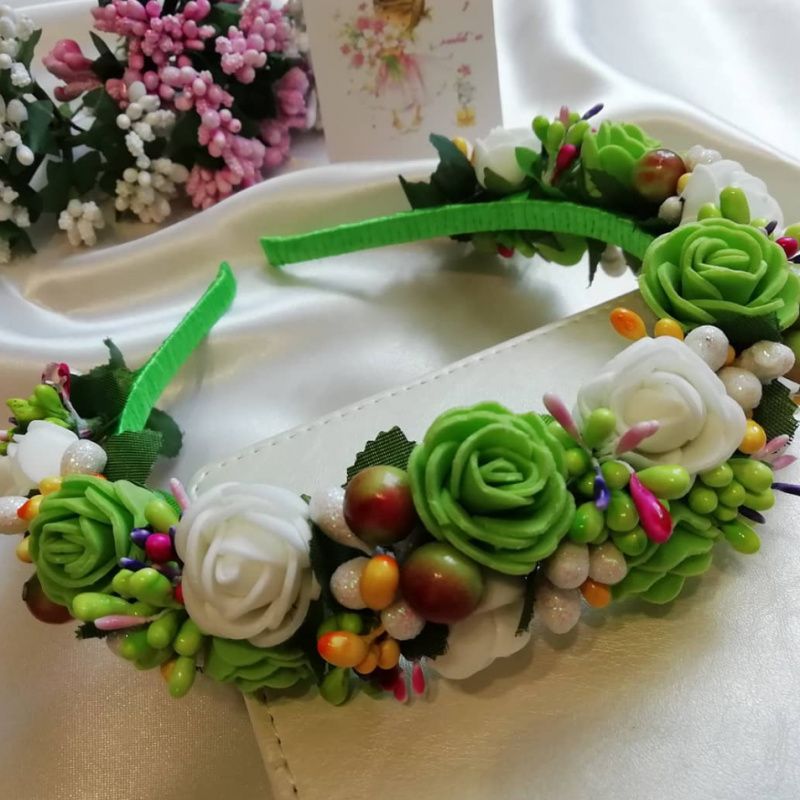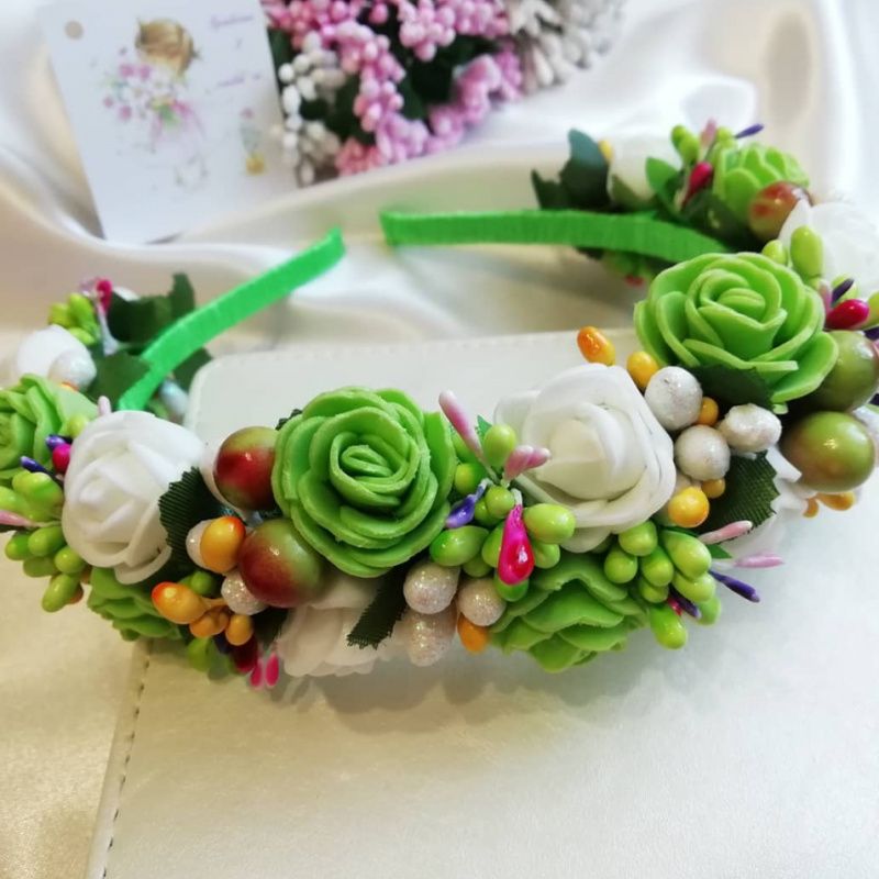 Яскравий, весняний обруч буде доречним на будь-яке свято або просто для фотосесії.