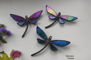 Портал хенд-мейд “Золоті руки” також пропонує Вам вітражі Тіффані. Зокрема чудова брошка (вітраж) ручної роботи. Кольорове скло, а точніше його частинки різних відтінків, майстри з’єднують за допомогою запаювання мідної фольги. Ця техніка дозволяє відійти від стандартних плоских форм, адже можна з’єднувати деталі вітражу під певним нахилом.