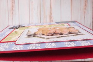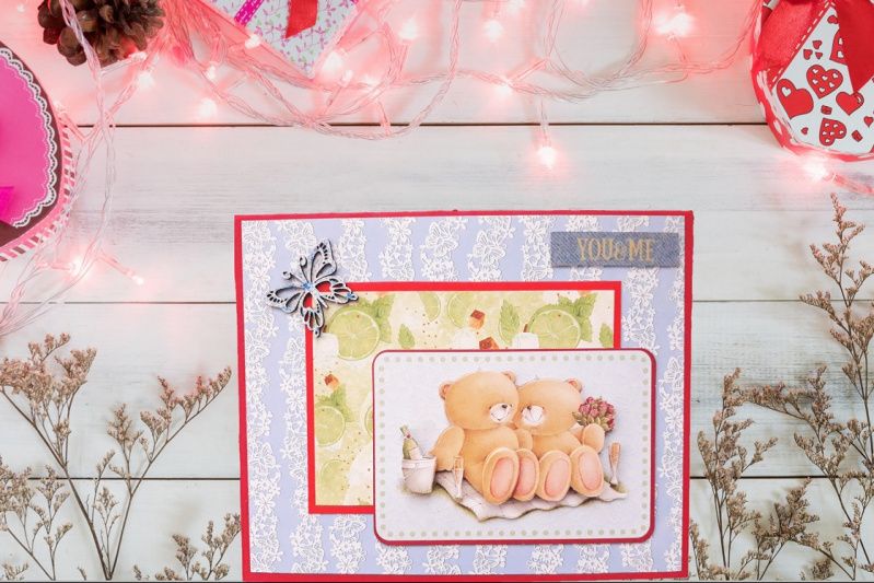 П'ята об'ємна (де ведмедика) листівка ручного раба з гліттером, прикрашена дерев'яним елементом-метеликом