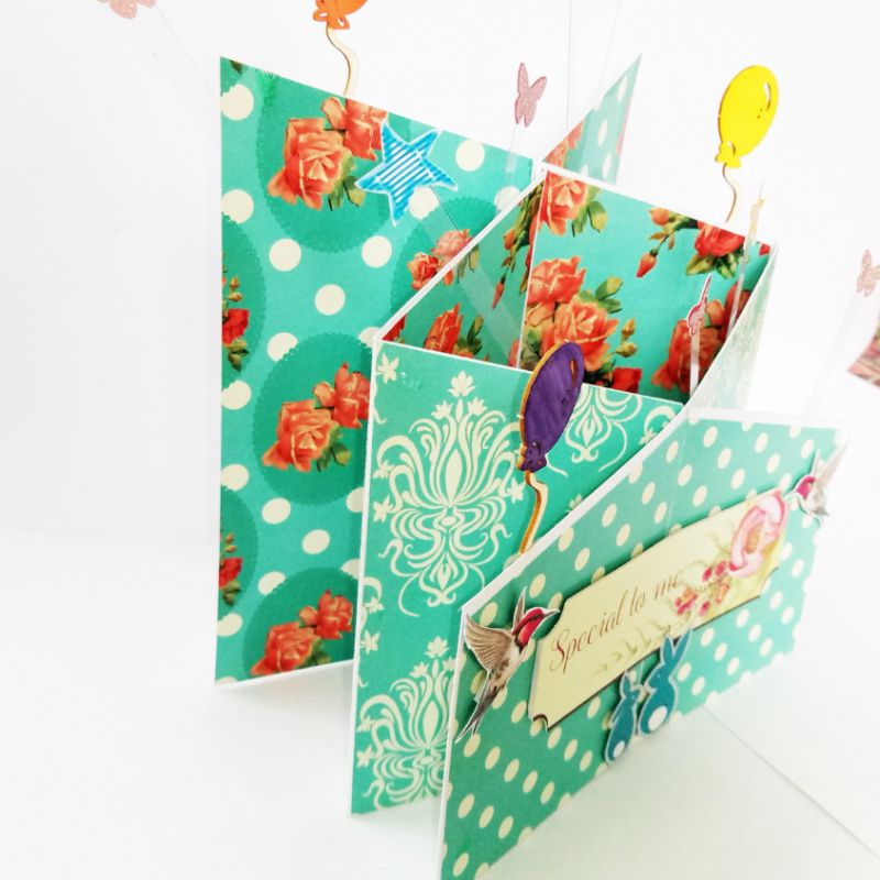Об'ємна листівка ручної роботи, для всіх, хто любить дивувати)) Прикрашена дерев'яними елементами (кульками)