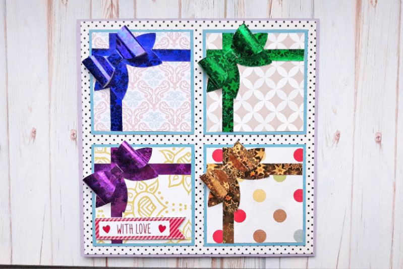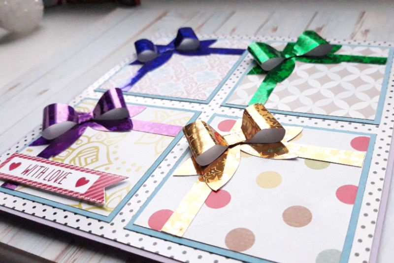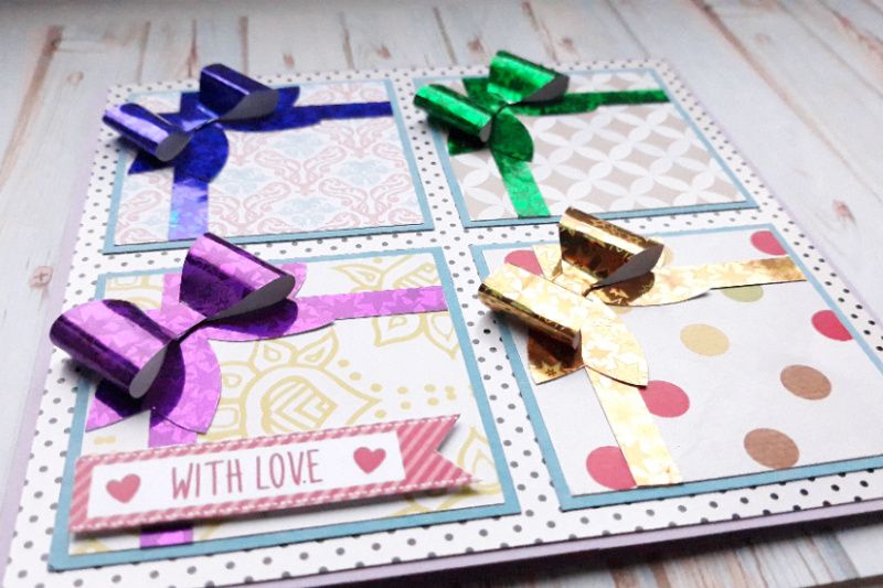 Листівка з об'ємними бантиками ручної роботи з паперу з голограмним ефектом