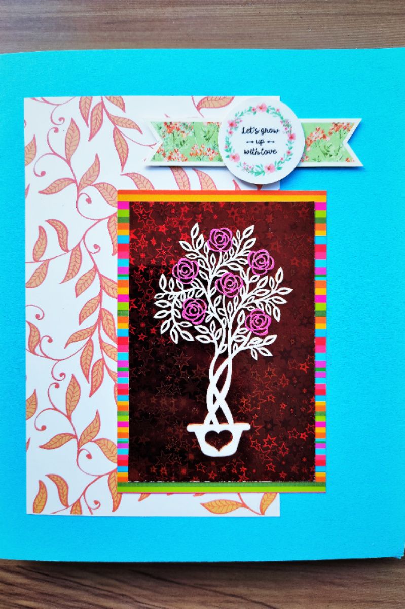Листівка ручної роботи з голограмою (червоний фон) та об'ємним деревом