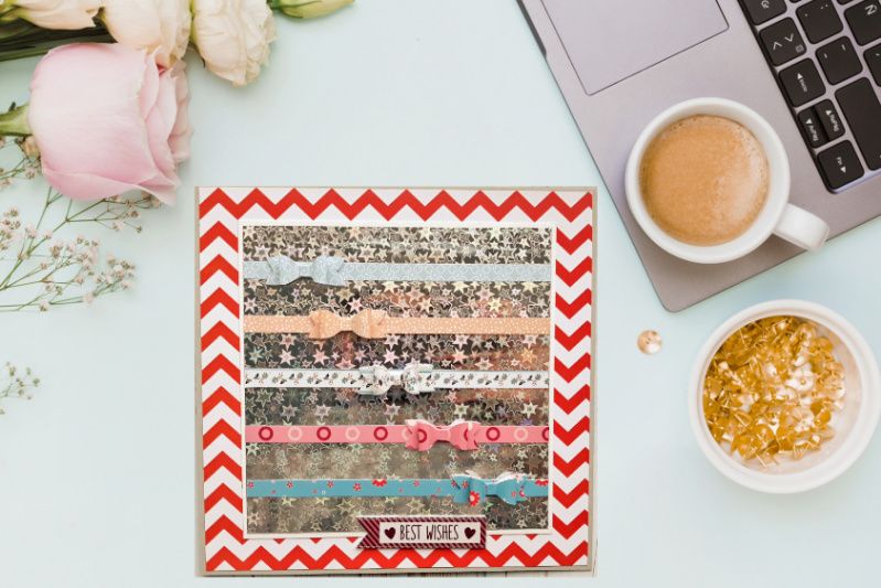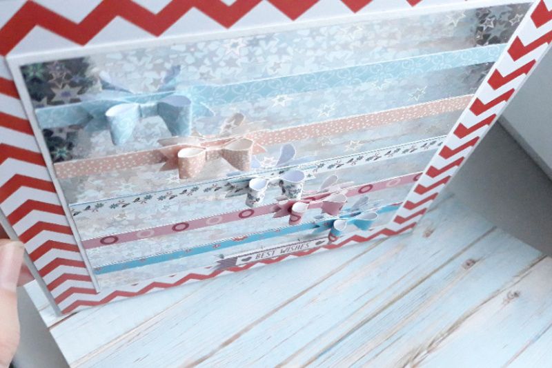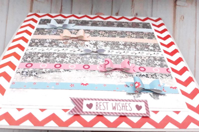 Листівка з фоном-голограмою (зірки) і об'ємними бантиками