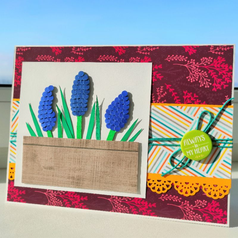 Листівка ручної роботи, виготовлена з дизайнерського картону і дизайнерського паперу, прикрашена 3D квітами