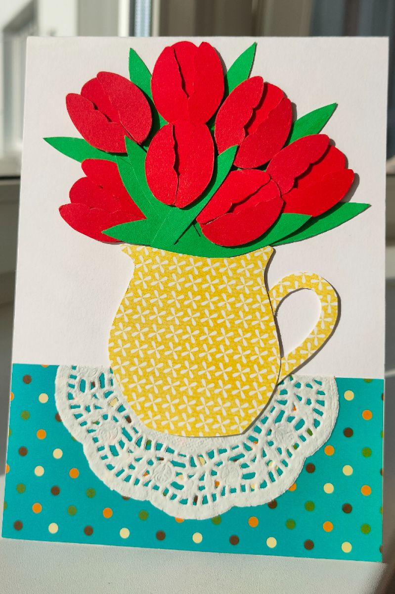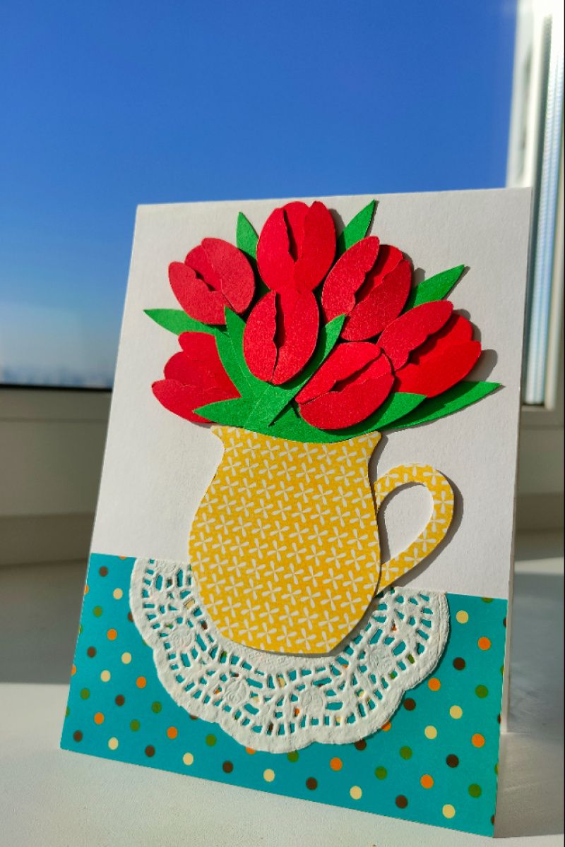 Об'ємна листівка ручної роботи, виготовлена з дизайнерського картону і дизайнерського паперу