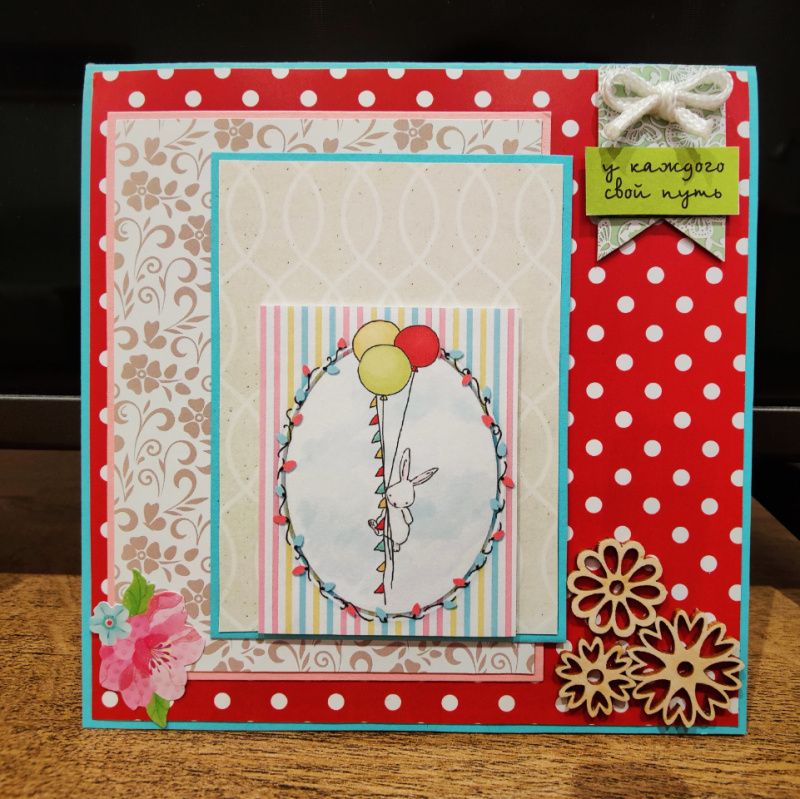 Листівка ручної роботи з використанням об'ємних кольорів (справа внизу)