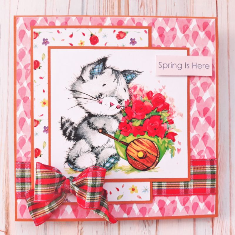Листівка ручної роботи, виготовлена з дизайнерського картону і дизайнерського паперу, прикрашена бантиком і стрічкою