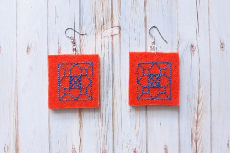 Вишиті хрестиком на фетрі сережки. Основа тверда + фетр з двох сторін