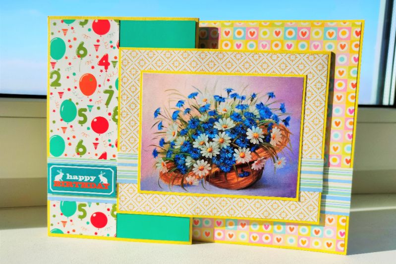Листівка ручної роботи, виготовлена з дизайнерського картону та дизайнерського паперу