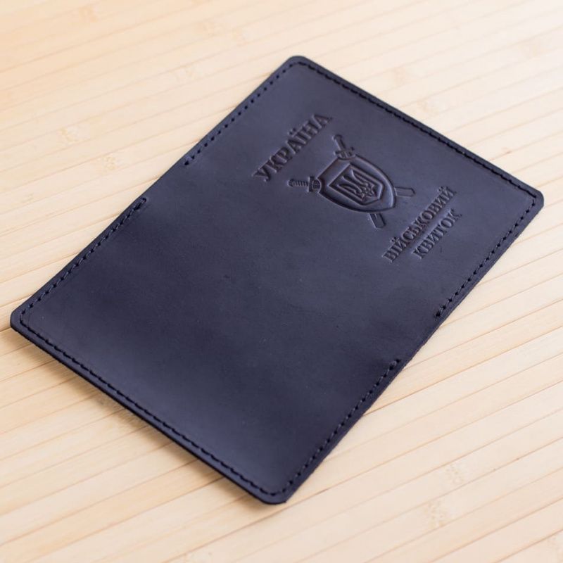 Обкладинка на військовий квиток. Колір шкіри і розміри можуть бути іншими при індивідуальному замовленні. Матеріал: натуральна шкіра Crazy Horse Розміри: 135 х 91 х 5 мм. Якщо Ви хочете мати не просто річчю, а чимось унікальним, статусним, то наша обкладинка на військовий квиток ручної роботи створена спеціально для вас! Також, вона відмінно підійде в якості подарунка вашому товаришеві по службі. Факти про шкіру Crazy Horse Шкіра Crazy Horse разюче відрізняється від іншої шкіри, яка використовується в шкіргалантереї. Вона неймовірно приємна на дотик: м'яка і бархатиста, має вінтажний вид, з часом на ній утворюються потертості і подряпини, що надає виробу особливий шик і неповторність. Має властивість кілька висвітлюються на вигинах, що тільки доповнює ефект. При бажанні всі сліди і подряпини можна прибрати за допомогою звичайної губки і безбарвного воску для шкіри. Вироби з такої шкіри дуже популярні на заході і тільки зараз починають входити в моду в Україні. Поки їх досить складно знайти в магазинах і практично неможливо знайти на ринках, вони досить рідкісні і цінуються креативними особистостями. Про нашу майстерні Кожен виріб майстерні Gridasov Leathercraft - це ексклюзивна і часто індивідуальна робота. Крім того, натуральний матеріал неможливо скопіювати двічі, тому власник може бути впевнений, що ніколи не зустріне точну копію, як це часто буває в мас маркеті, де вироби шиються великим тиражем. При виготовленні наших виробів ми використовуємо тільки натуральну шкіру італійського і українського виробництва і якісну, перевірену часом фурнітуру. Всі вироби прошиті товстої турецької поліестеровою ниткою Polyart. Тому, при правильній експлуатації, вироби мають необмежений термін служби. Можливе замовлення вироби в будь-якому іншому кольорі. Якщо товар в наявності, відправка здійснюється на наступний день після замовлення. Якщо виріб шиється під замовлення, то середній термін виконання замовлення становить 7-10 днів. Можлива також індивідуальна лазерне гравіювання будь написи або трафаретного малюнка.