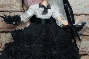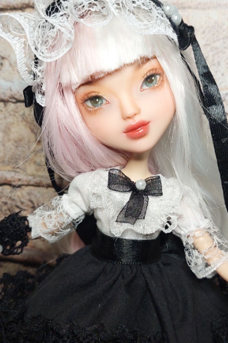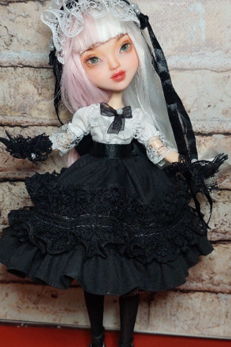 Лялька має шарнірне тіло, може приймати різні пози, волосся синтетичні приклеєні, обличчя розписано акварельними олівцями та пастеллю, розпис закріплена спецлаком.Плаття, взуття та головний убір. Лялечка виконана в стилі готичної Лоліти, стане гарним подарунком доя любителів та колекціонерів кастомних ляльок.