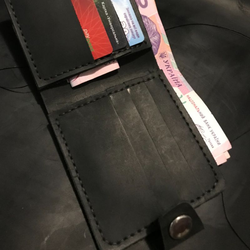 Чоловічий гаманець з натуральної шкіри. Для даного гаманця використовувалася якісна шкіра KPC. Прошитий вручну вощеними нитками міцним сідельним швом.