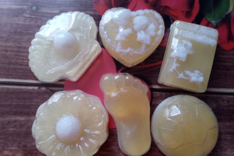 Мило з органічної основи з додаванням натурального меду, олії ромашки, ефірної олії іланг-іланг, аромат- диня медова, без барвника