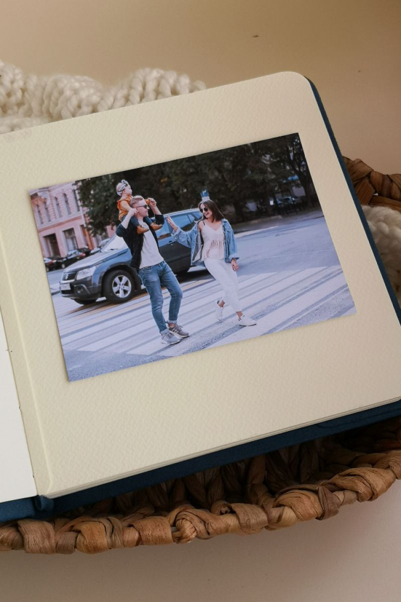 Розмір 19*19 див.; Всередині 28 листів кольору айворі (56 сторінок), щільність паперу 240 грам.; Матеріал обкладинки - еко замш; Можна розмістити 40 фото 10*15 см, 9*13 см, 13*18 см, 10*10 см Клей йде в наборі до альбому Також можливі інші розміри альбому: 21*21 см 25*25 см 30*30 см Буде чудовим подарунком для вас або ваших близьких!