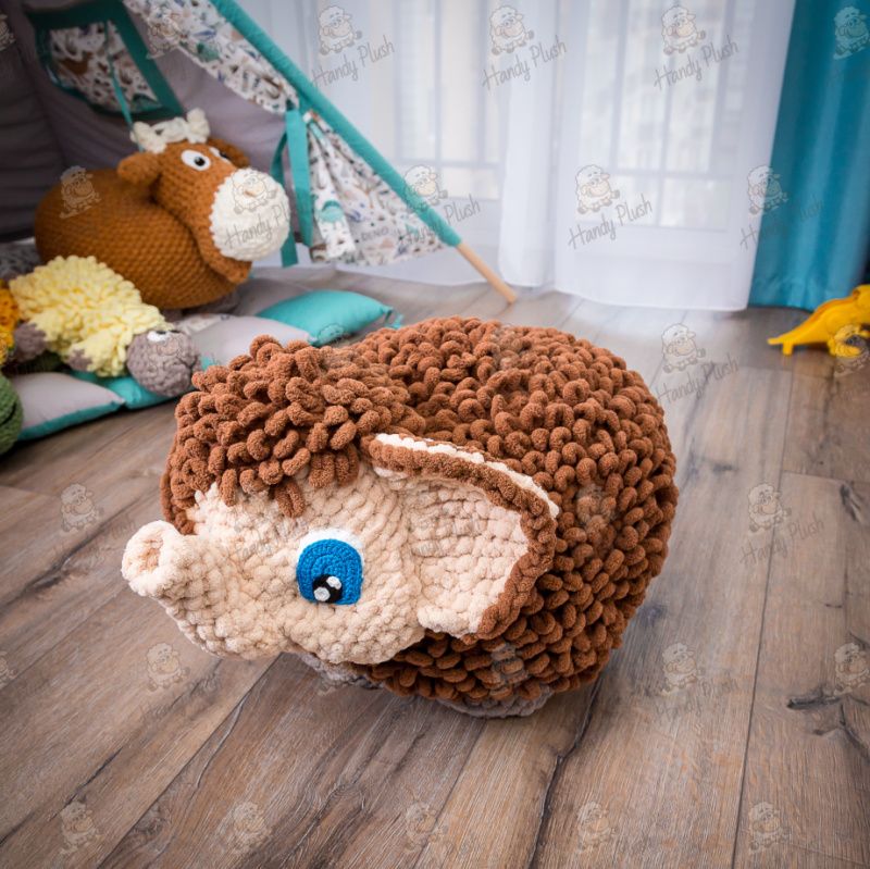 М'яка іграшка Мамонтеня пуф. Іграшка ручної роботи з м'якою і ніжною плюшевої пряжі. Відмінно вписується в інтер'єр. Дитина буде в захваті від такого подарунка. Можна використовувати як пуф або як подушку. Іграшка подарує море радісних емоцій Вашим дітям!