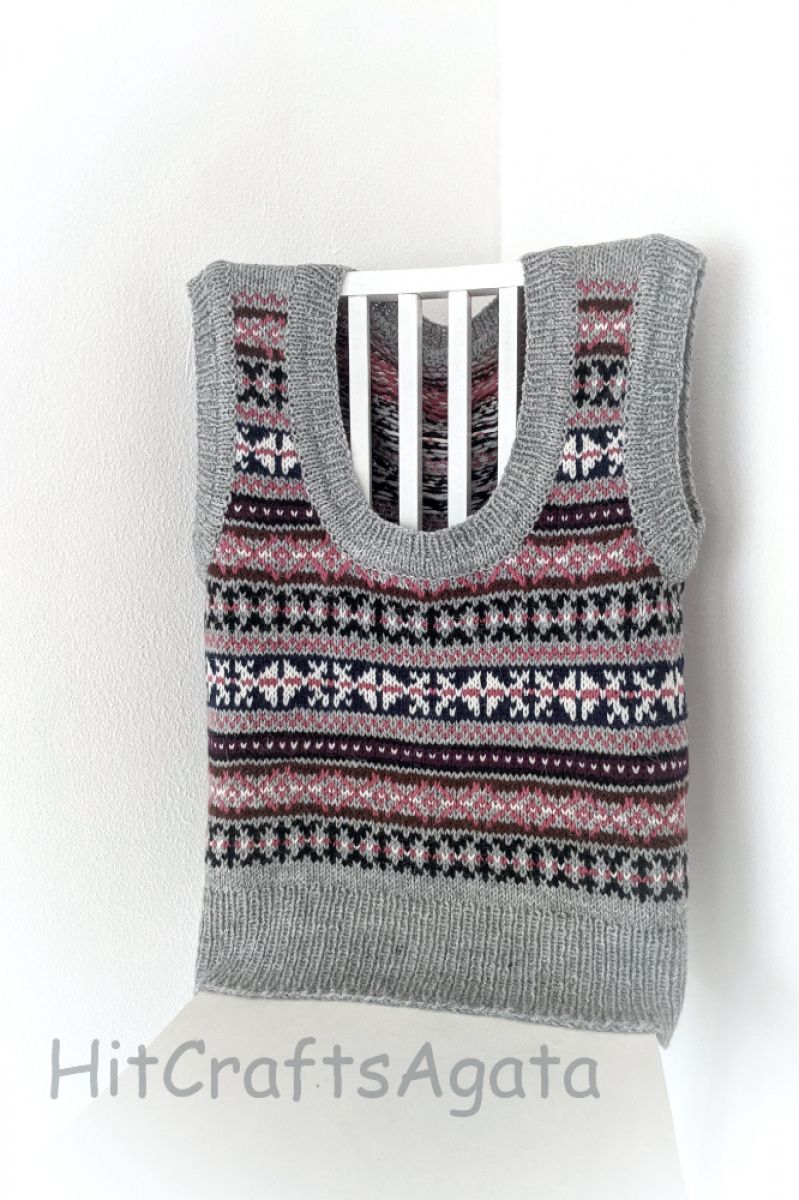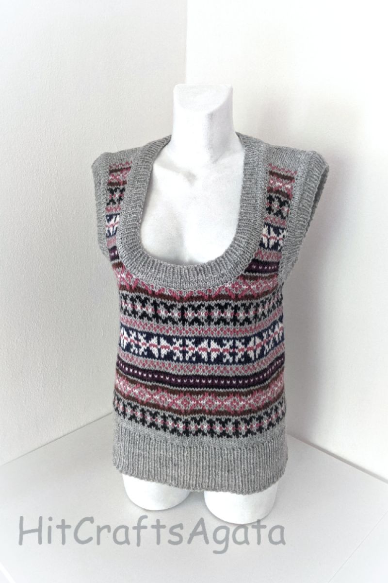 Безрукавка з орнаментом ручної роботи. Зв'язана спицями по колу, без швів, в тадиційній ісландскій техніці fair isle. Подвійна обробка краю. Чудовий подарунок до зимових свят.