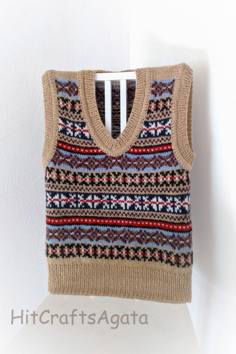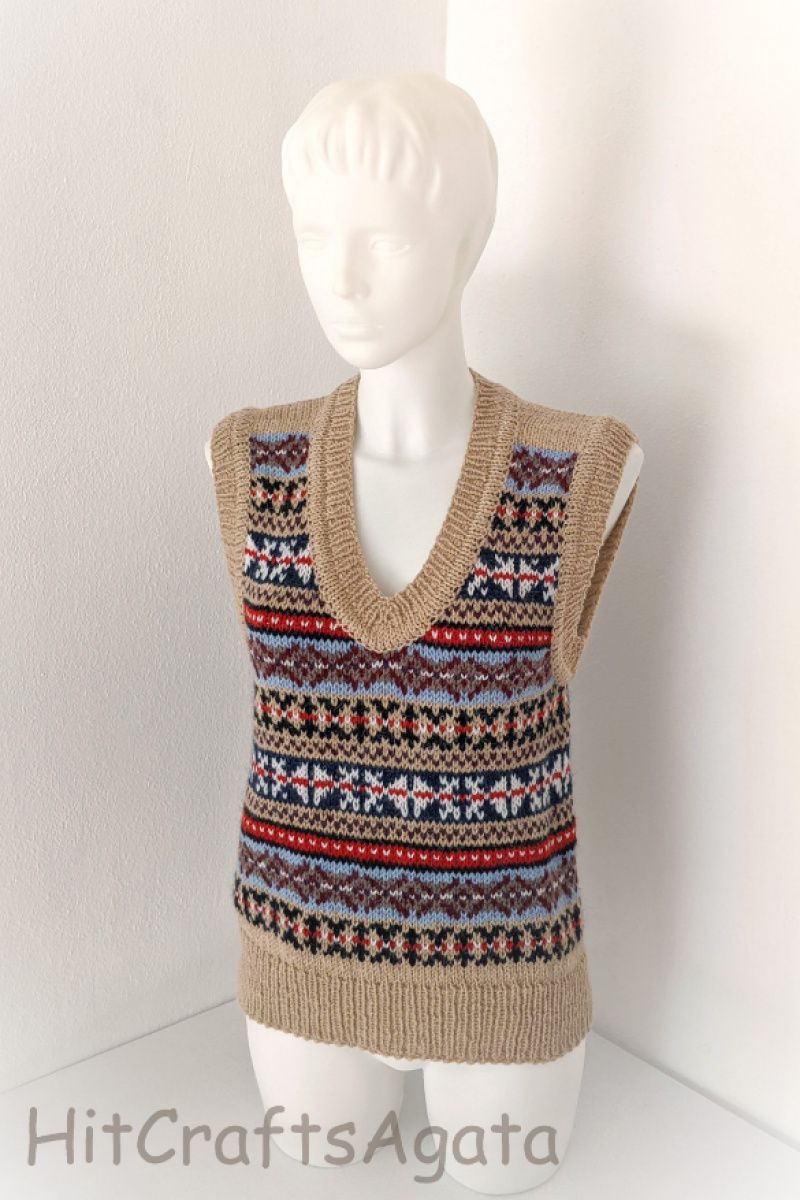 Безрукавка ручної роботи для жінок та чоловіків. Зв'язана спицями по колу, без швів, в тадиційній ісландскій техніці fair isle.Подвійна обробка краю. Яскрава та тепла. Стильний подарунок для кожного.