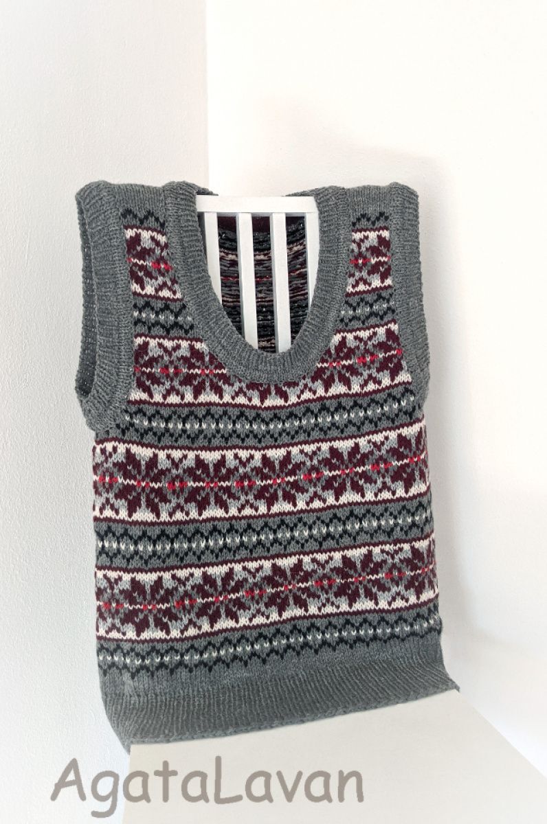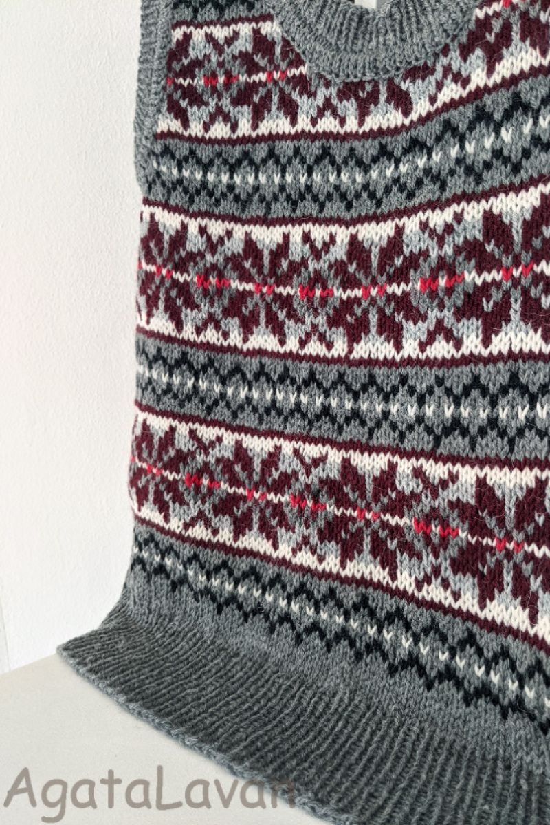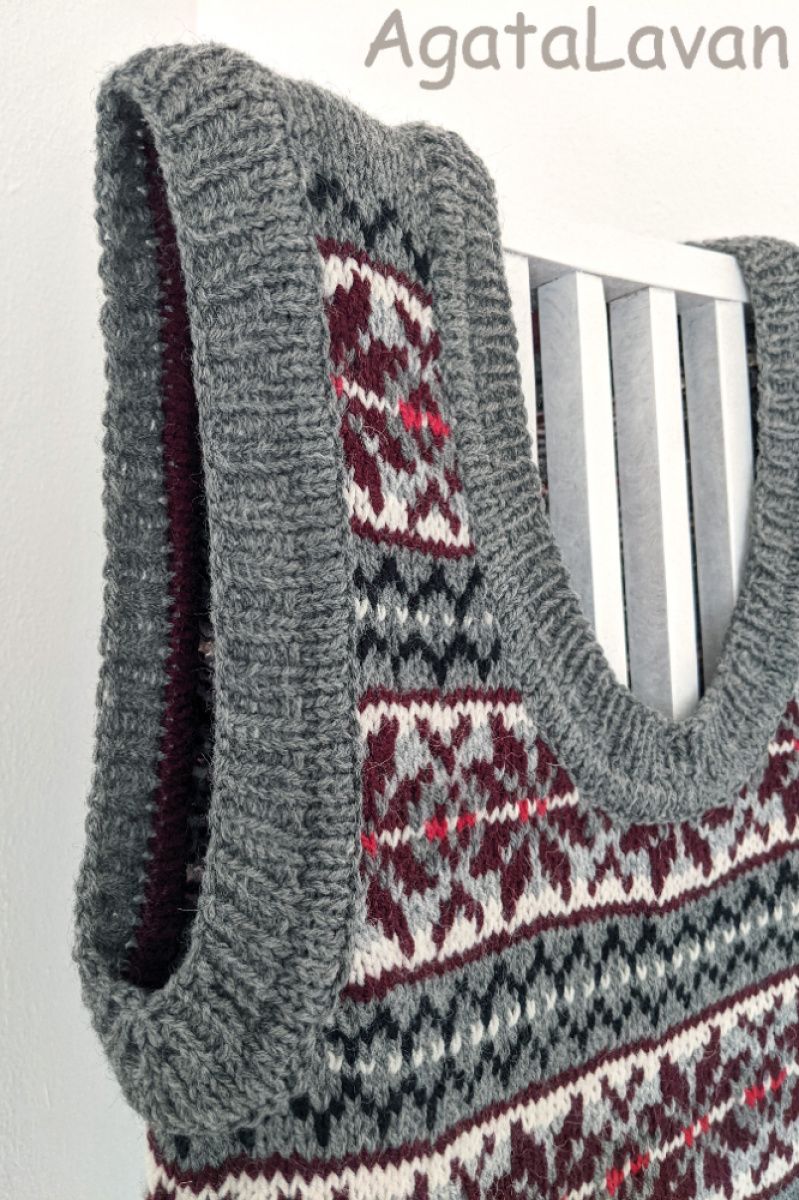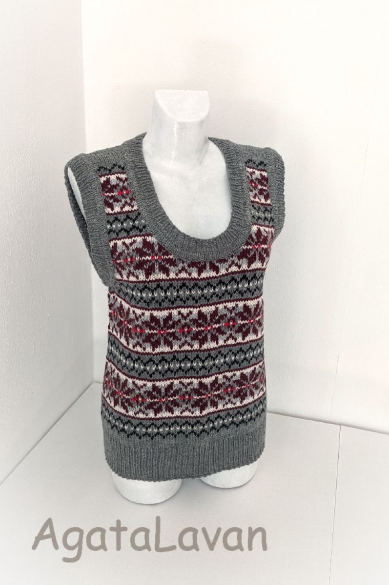 Жіноча безрукавка з орнаментом. Зв'язана спицями по колу, без швів, в тадиційній ісландскій техніці fair isle.Подвійна обробка краю. Класичний сілуєт та стримана кольорова гамма. Чудовий подарунок до свят.