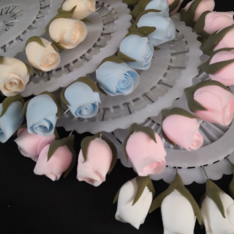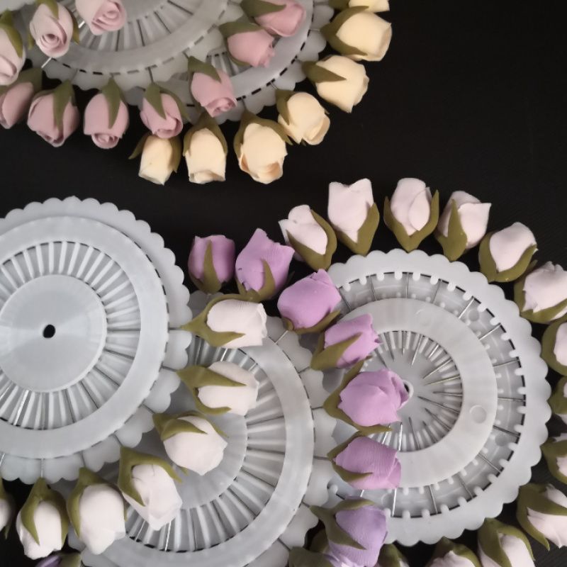 Кожна трояндочки має букльку, якою фіксується гострий кінець булавки.
