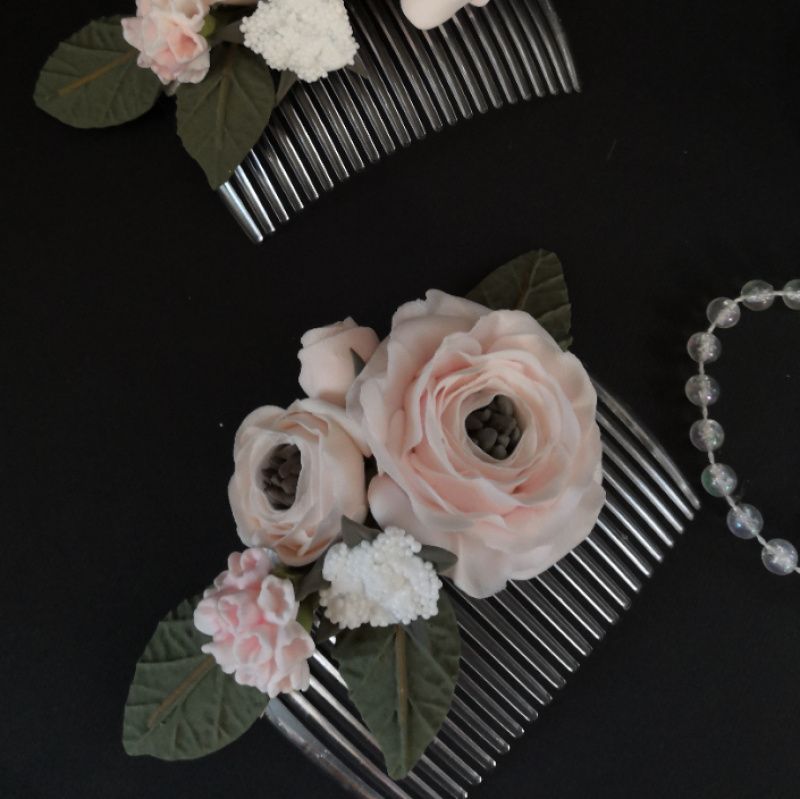 В одному стилі можуть бути гребінець, бутоньєрки та декор.