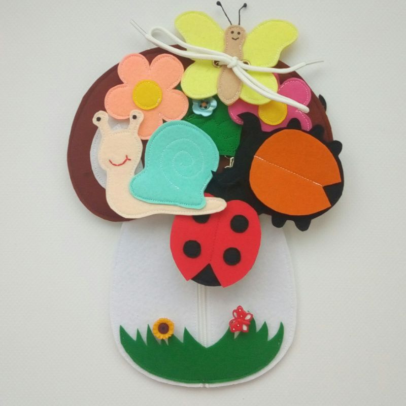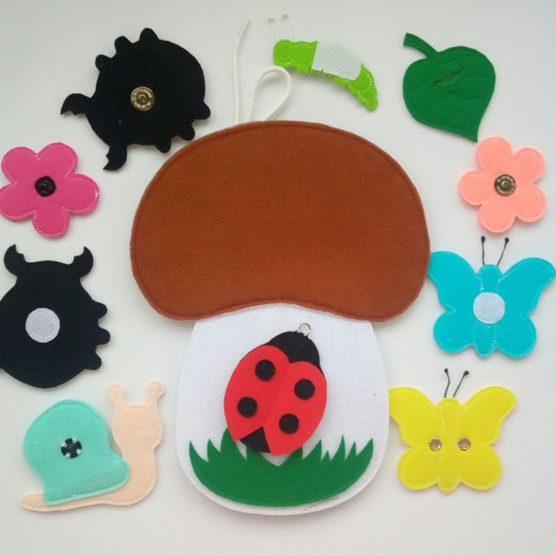 Грибок - багатофункціональна двостороння іграшка - посібник. З одного боку пальчиковий тренажер з різними застібками (ґудзик, магнітні кнопки, прості пришивних кнопки, шнурівка, гачок, липучка). Зворотний бік - це ворсиста тканина, на яку чудово чіпляються ігрові елементи за допомогою липучок на зворотному боці. Завдяки Вашим бажанням і фантазії Вашої дитини, можна скрасити і з користю провести навіть дощовий вечір. Склад набору: Грибок і 10 дрібних деталей. Розмір Гриба: 28х22 см Вартість набору Грибок: 450 грн. або 18 дол США Відправлю в будь-яку точку світу :)