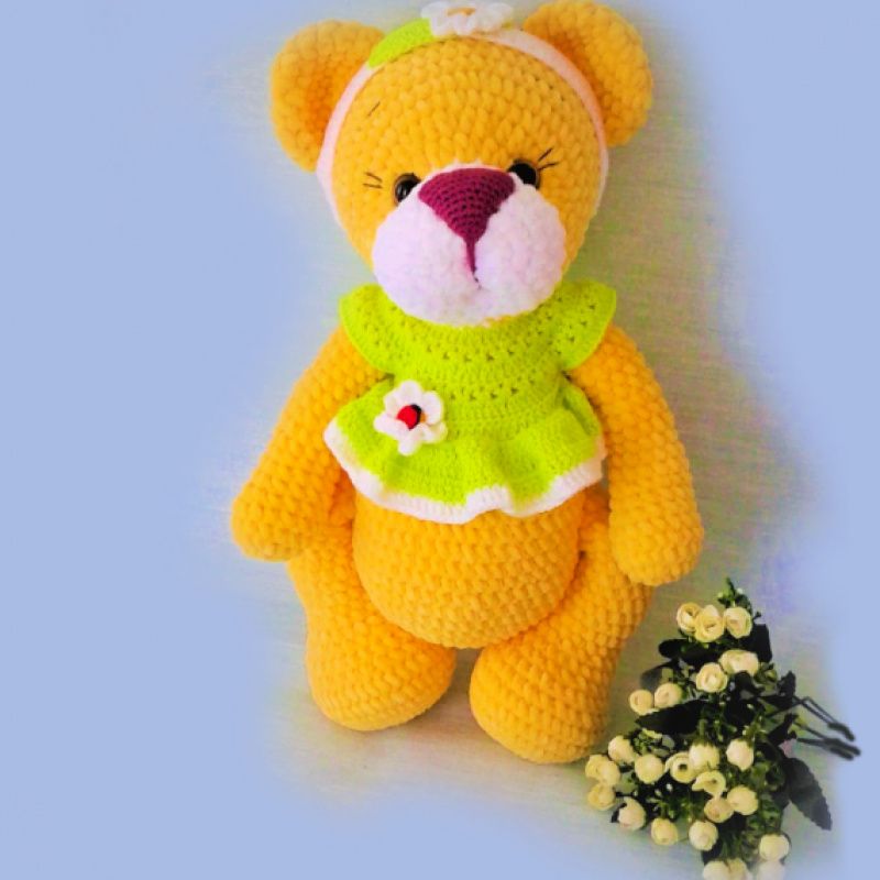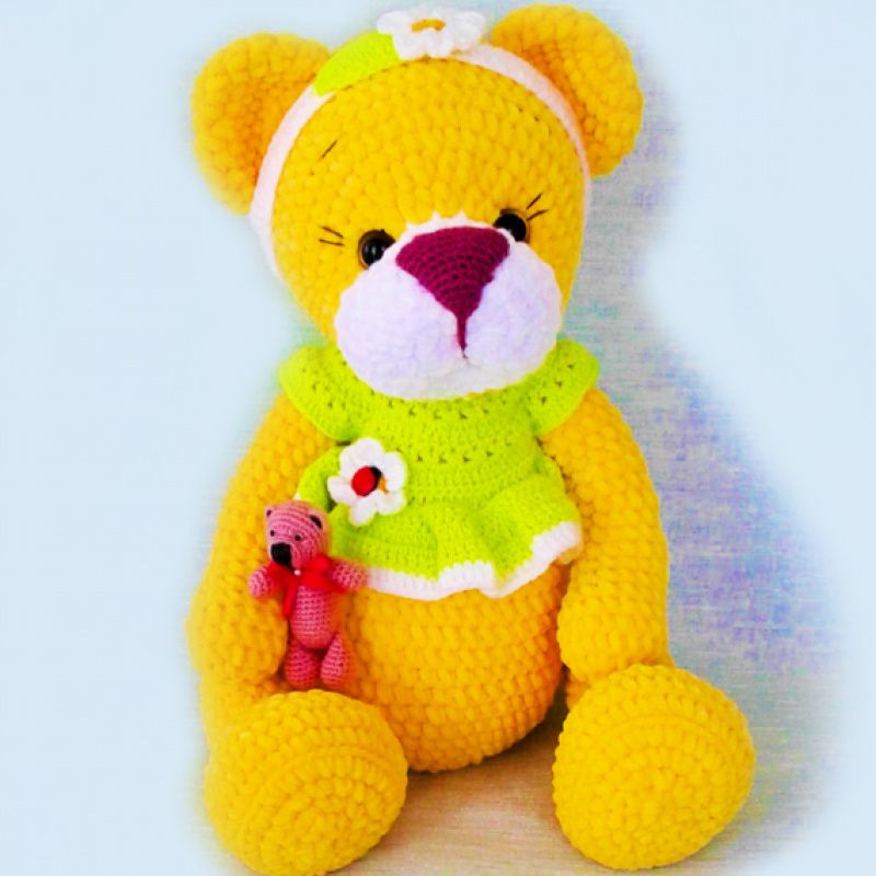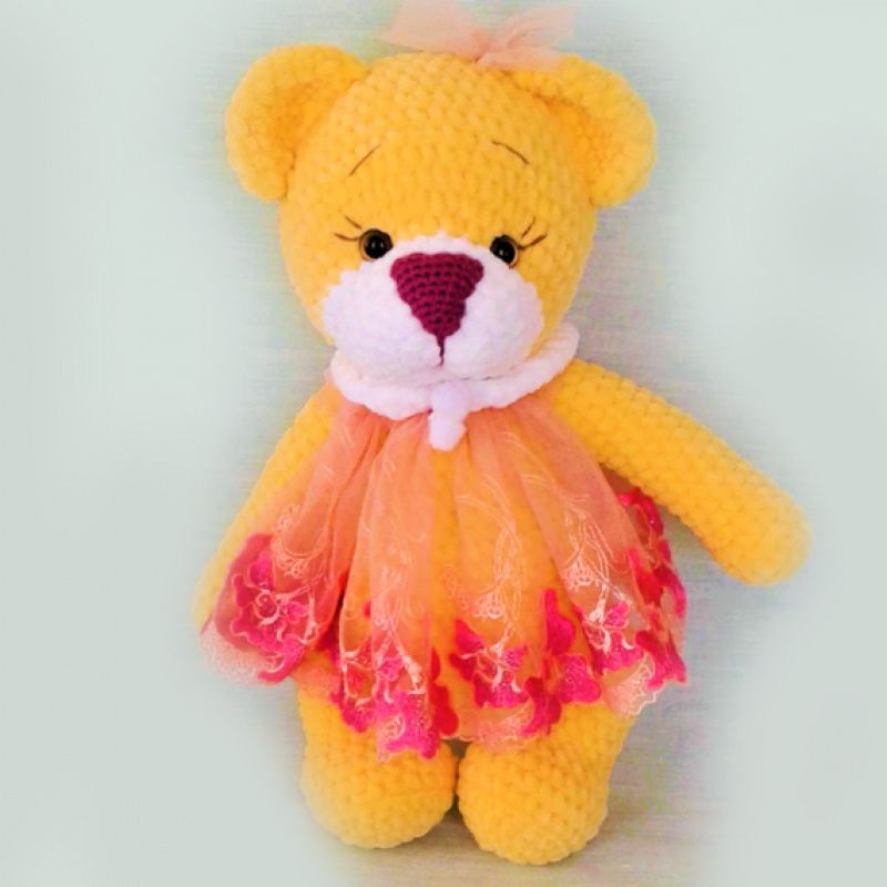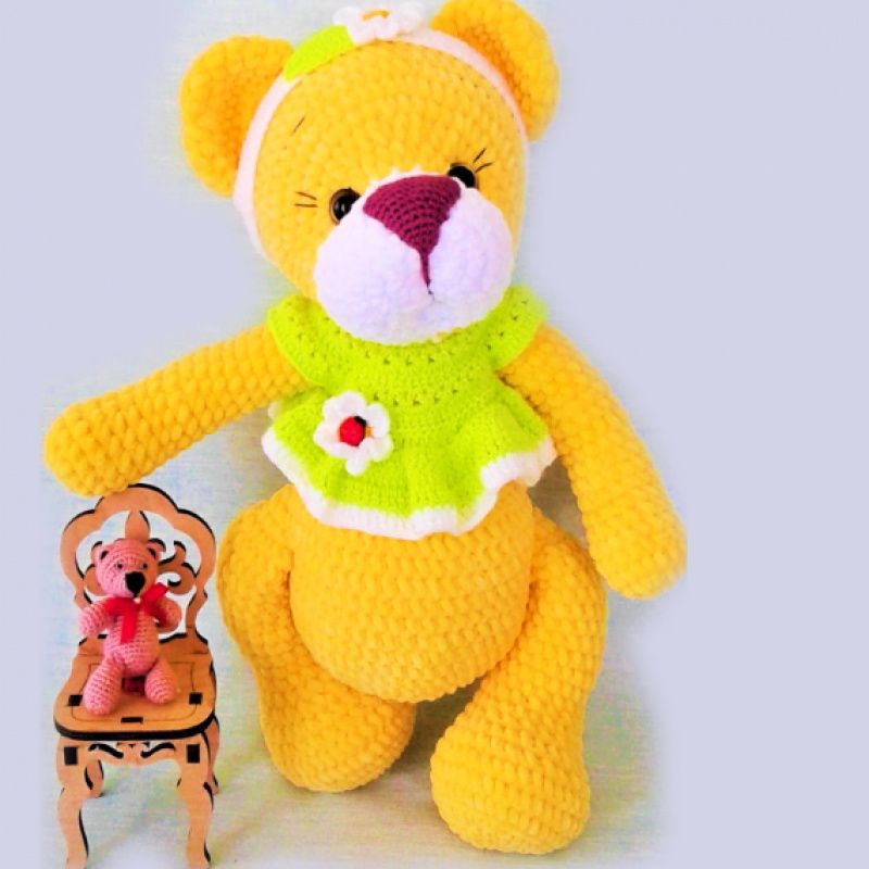 В'язаний плюшевий ведмедик. М'яка іграшка в подарунок дитині, одному, дівчині.