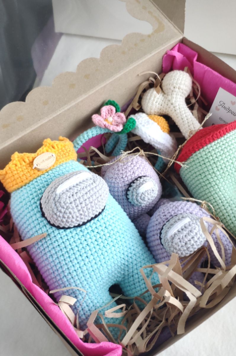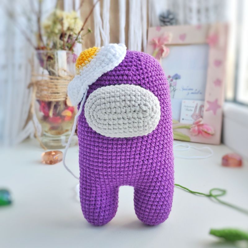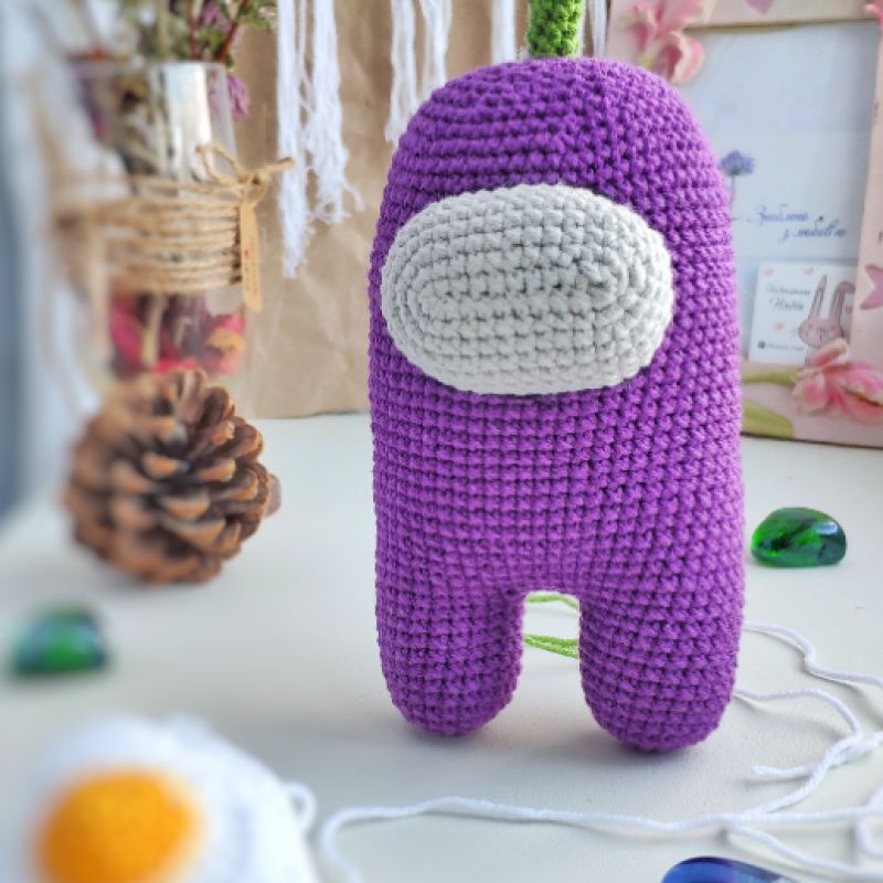 Персонаж популярної гри Among us. Виконаний з полухлопковой пряжі.