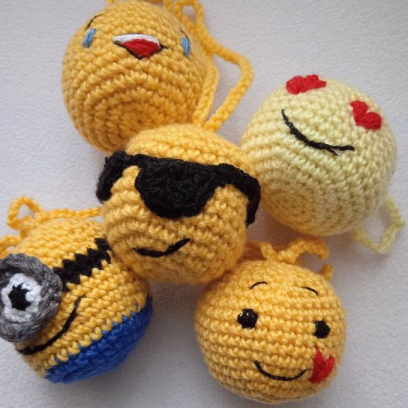 В'язані смайлики ручної роботи на будь-який смак, ними можна прикрасити сумку, рюкзак, вони зададуть настрій вашому дню.