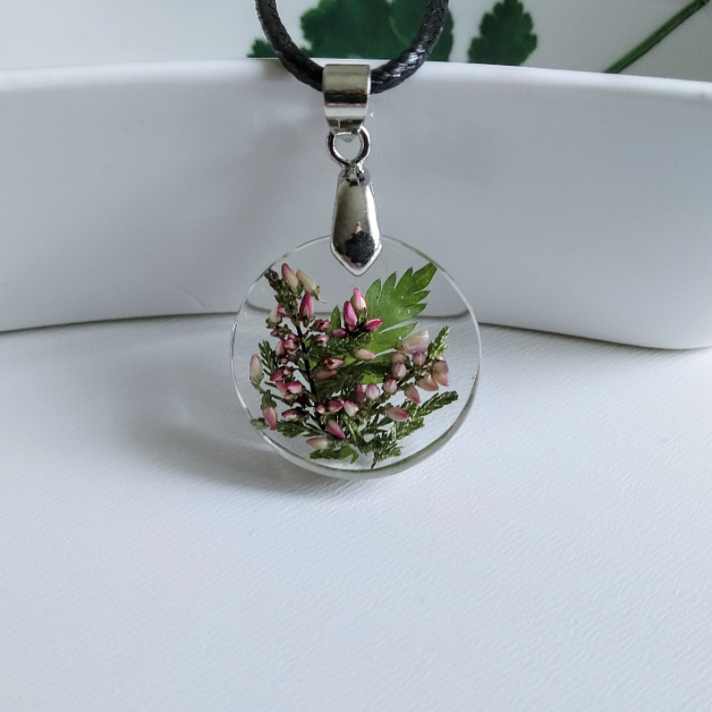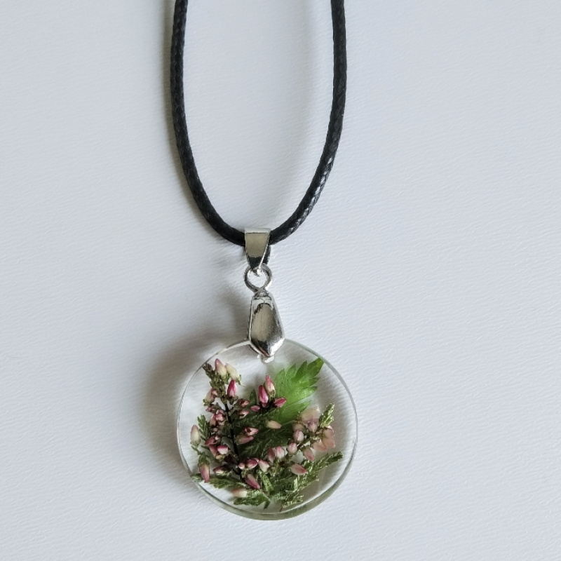 Кулон з натульних квітів залитий ювелірною єпоксидною смолою.