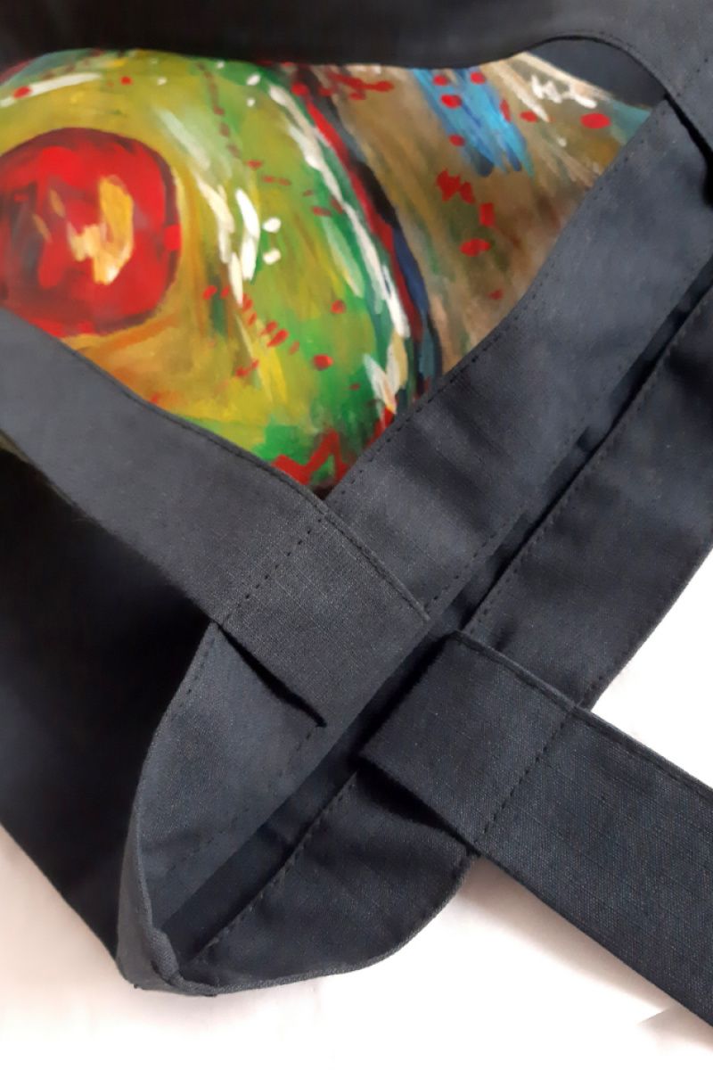 Міцна та практична сумка-шопер із розписом ручної роботи. Малюнок виконаний стійкими якісними акриловими фарбами по текстилю, стійкими до прання.