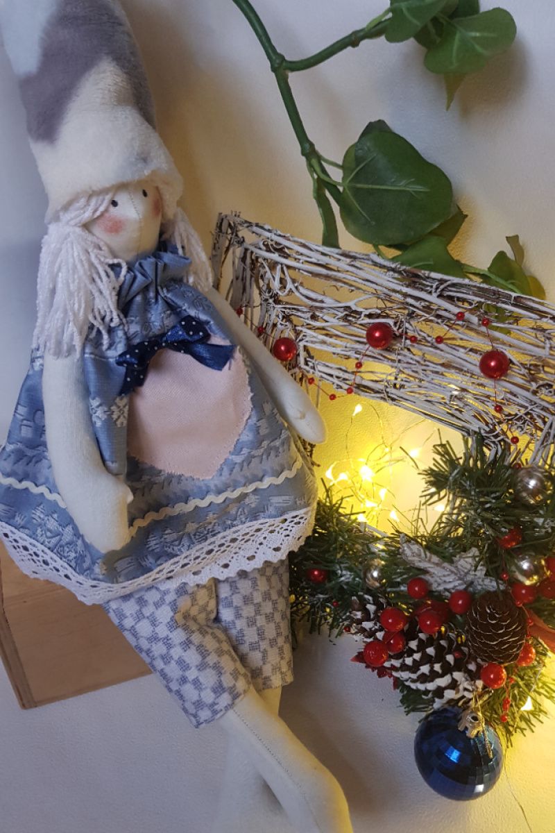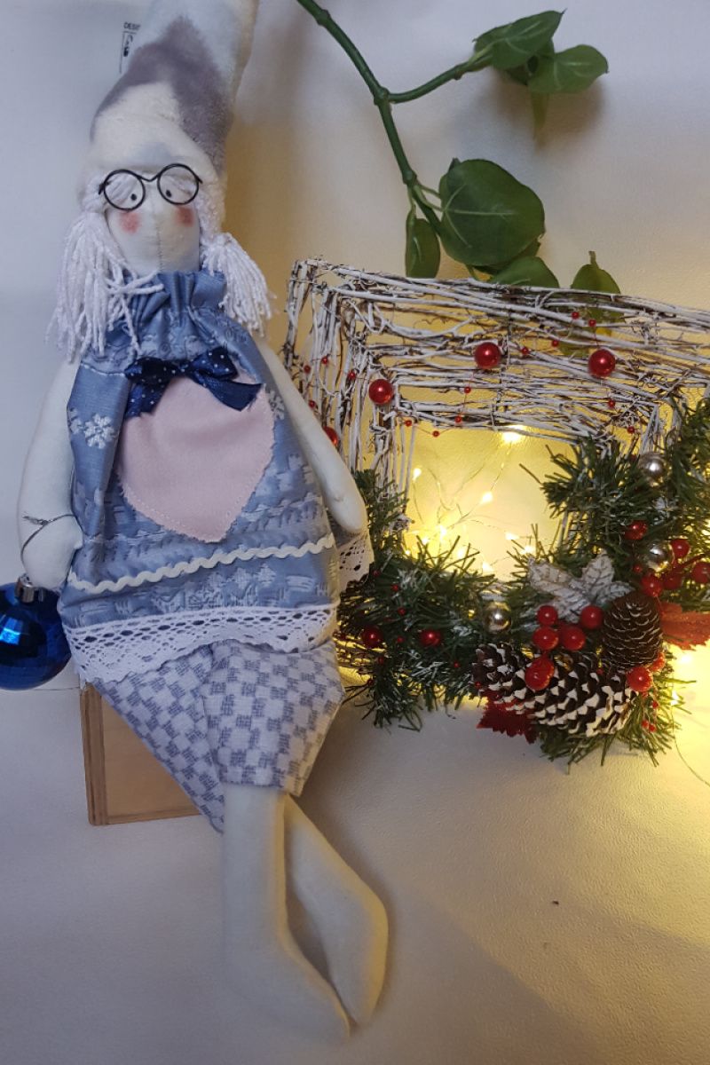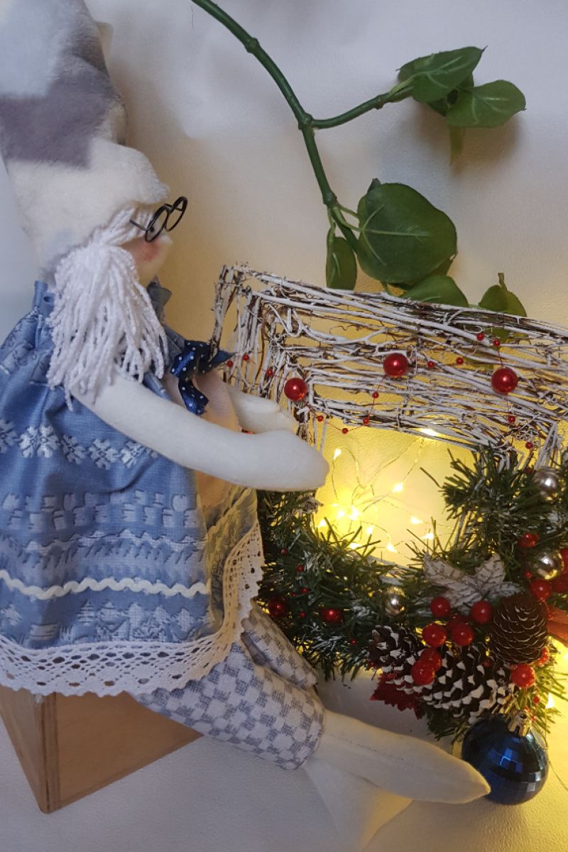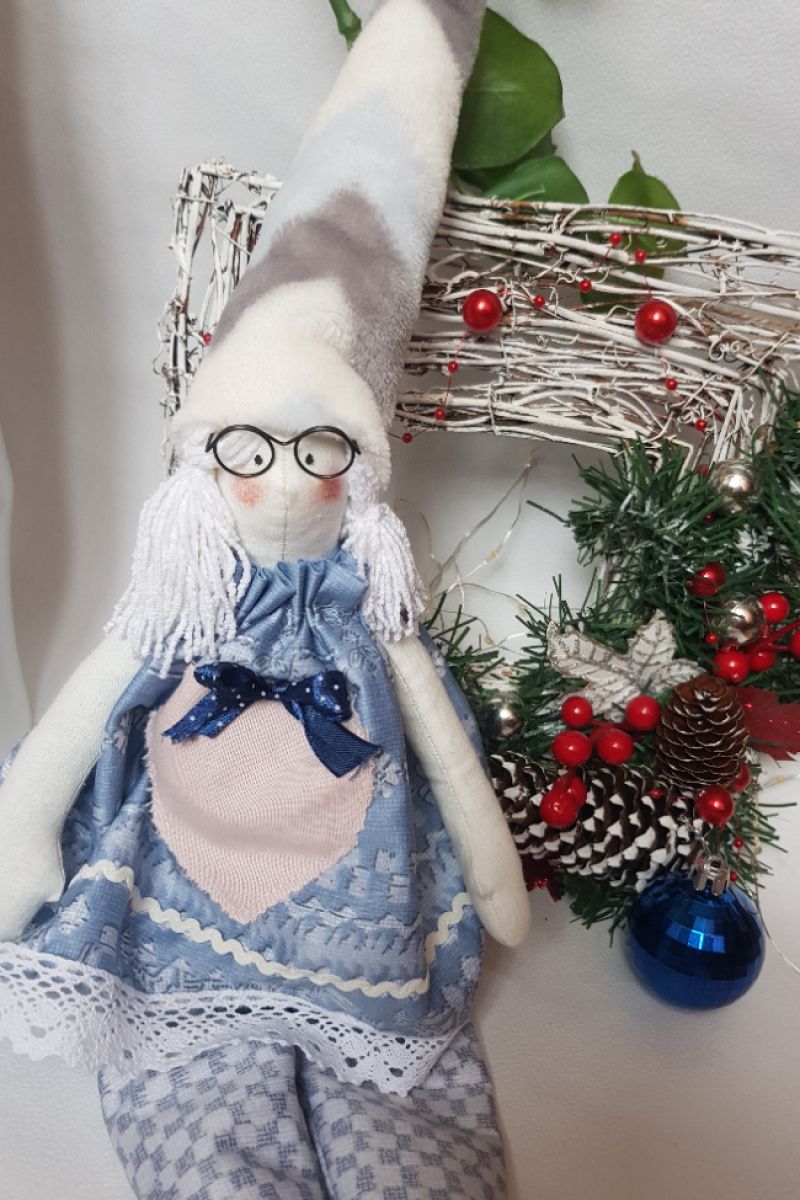 Новорічна Гномочка прикрасить ваш будинок та створить затишок та тепло. Красиво буде виглядати під ялинкою або на камінній полиці. Ніжки звисають. Одяг не знімається.