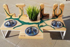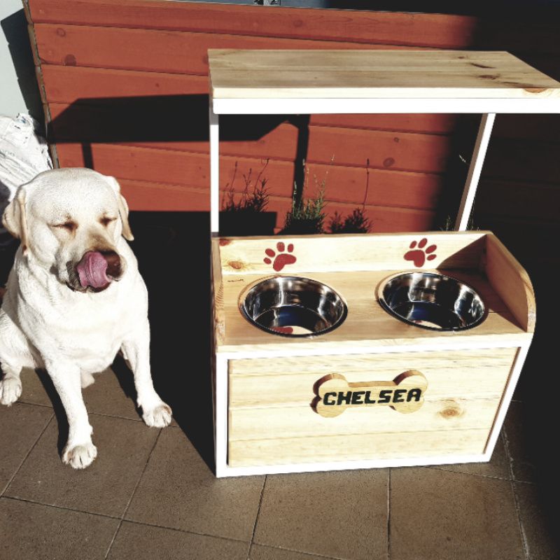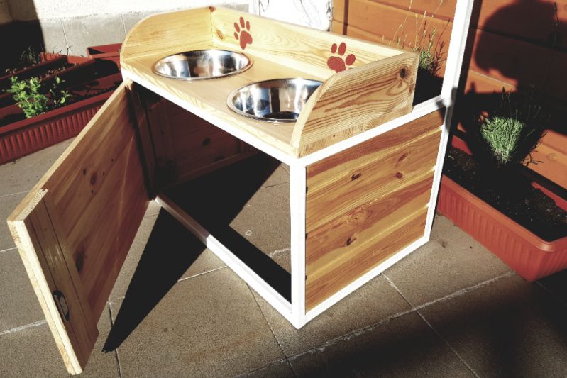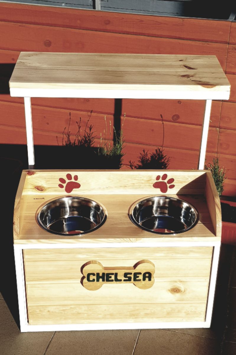 Іменна підставка "Смарт" з мисками та місцем для зберігання для вашого улюбленця ручної роботи з індивідуальним дизайном