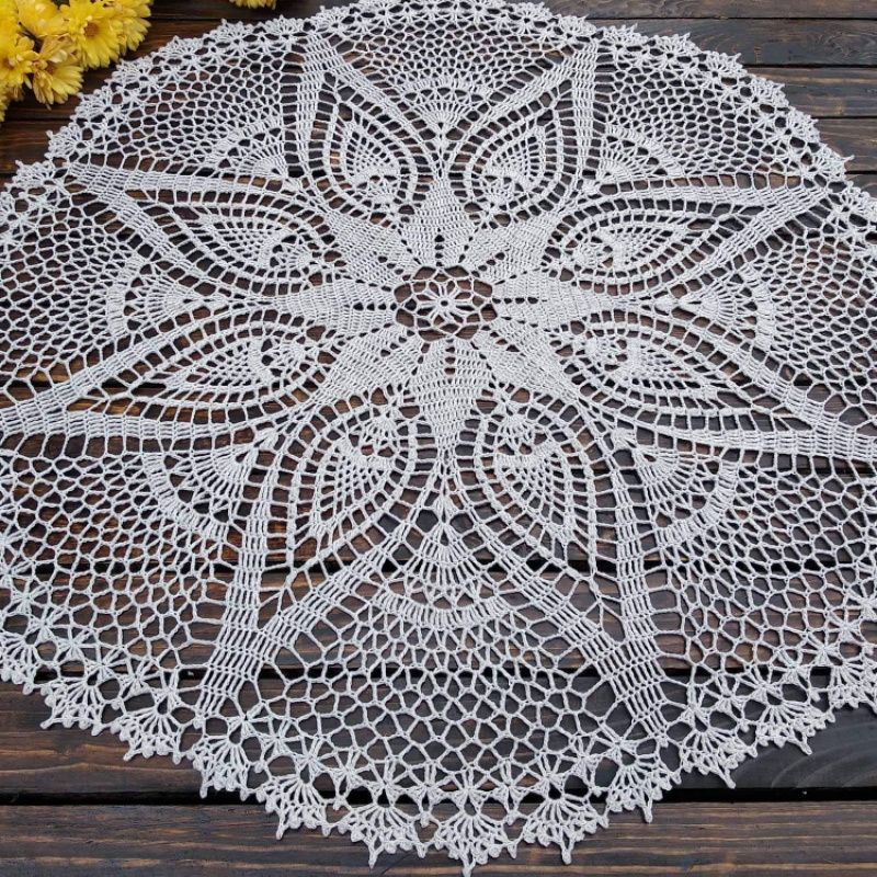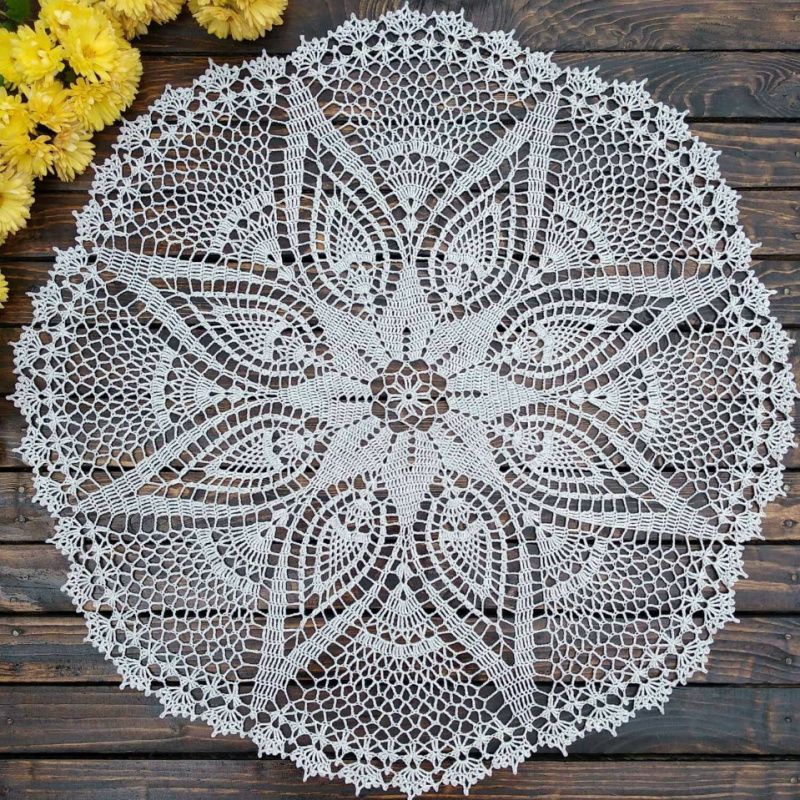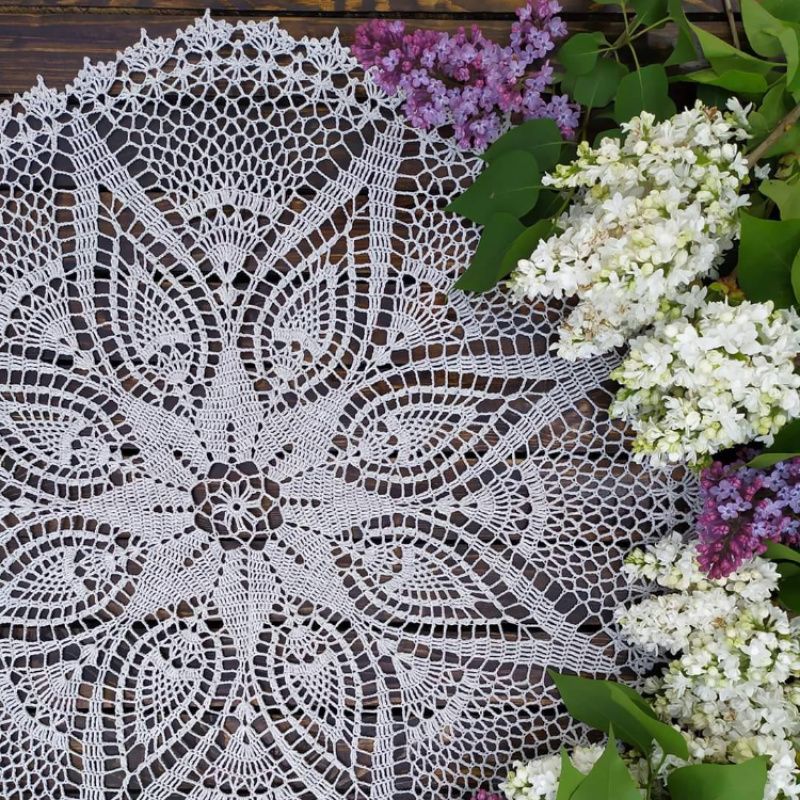 Ніжно сіра (кольору льону) серветка чи міні скатертина діаметром 57 см. Плетена з тоненької пряжі (льон/бавовна).