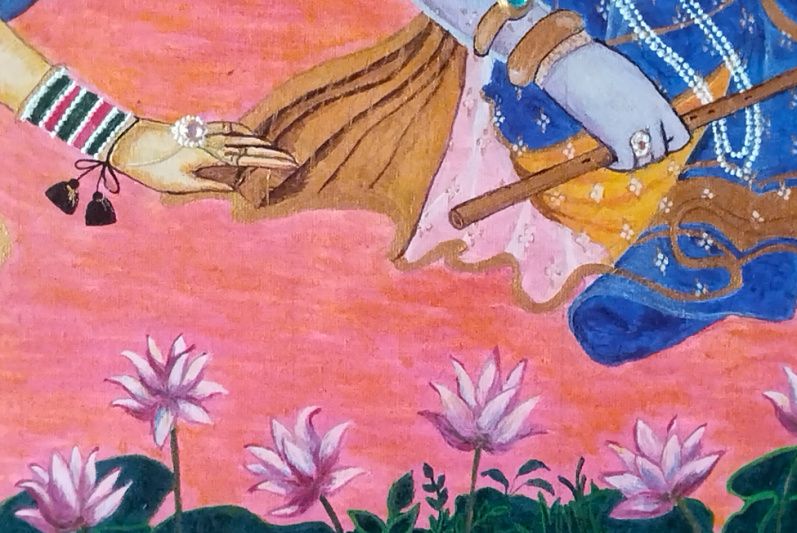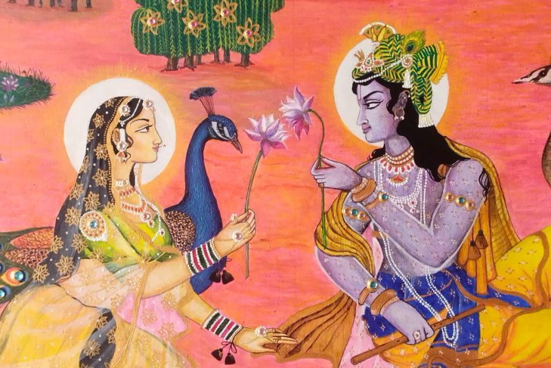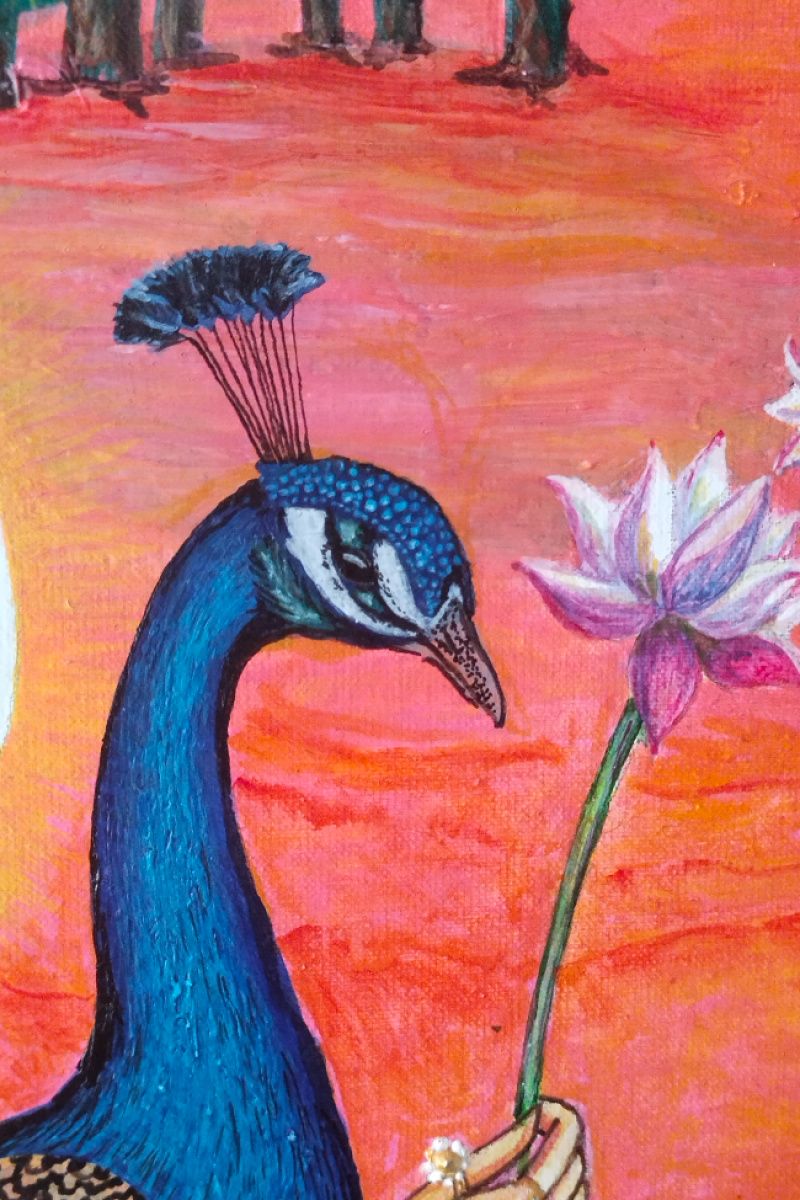 Картина про любов і гармонії в індійському стилі. Написана автором напередодні весілля і поїздки в Індію. Виконана акрилом, декорована стразами. Розмір 70 * 95 см.