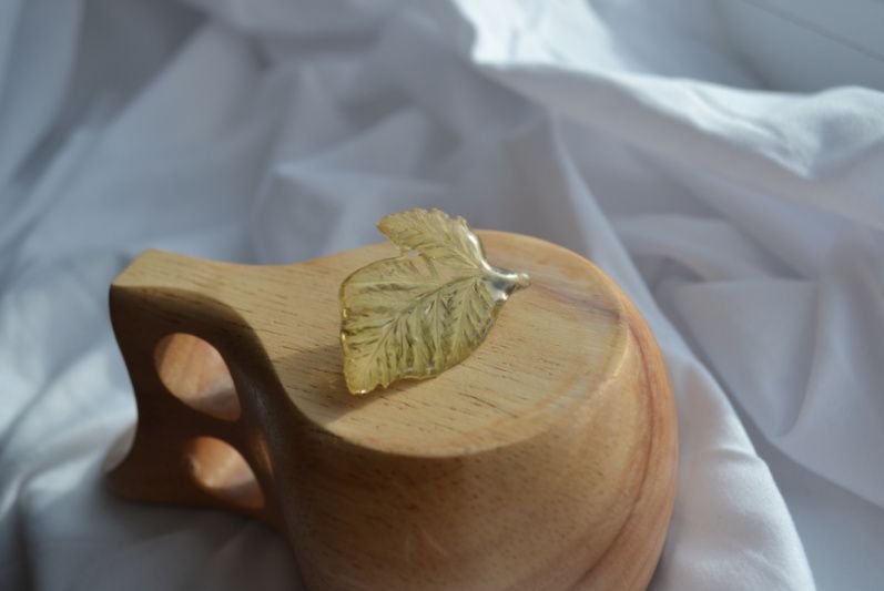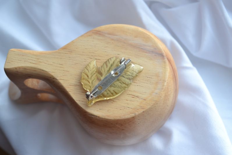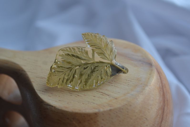 Брошка з епоксидної ювелірної смоли. Всередині пелюстка рослини. Виріб в індивідуальній упаковці