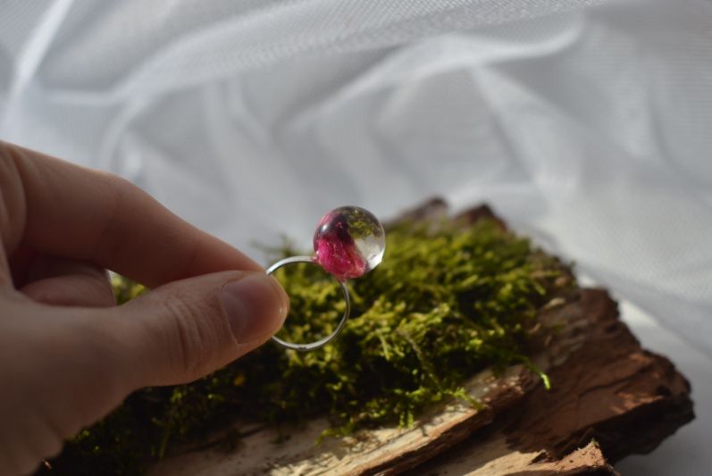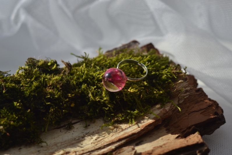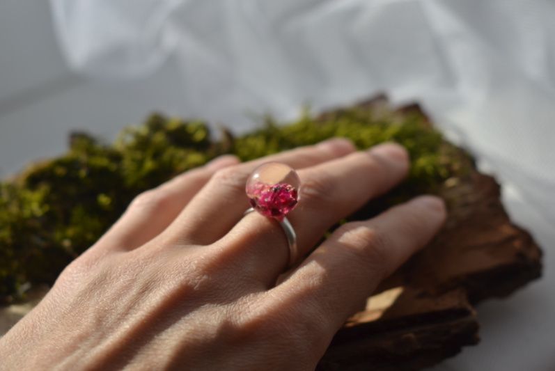 Перстень з епоксидної ювелірної смоли та сухоквітів. Кожен виріб в індивідуальній упаковці. Перстень регулюється