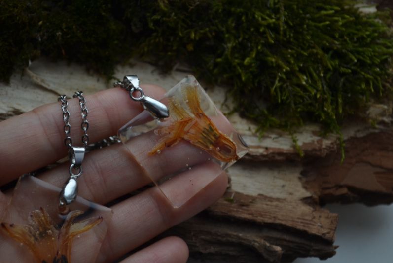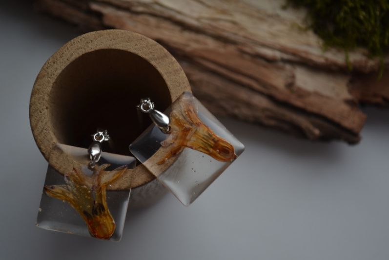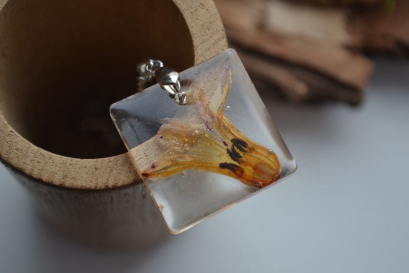 Прикраса з квіткою. Виготовлена з епоксидної ювелірної смоли. Кожен виріб має індивідуальну упаковка