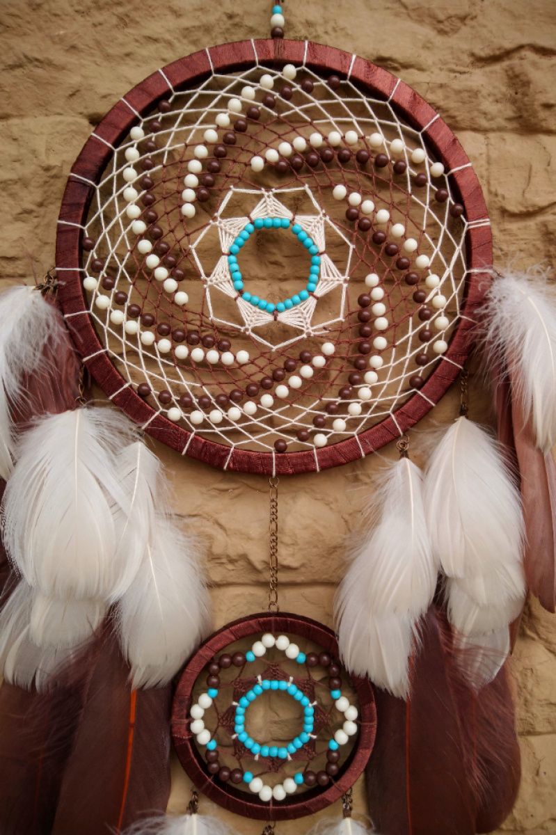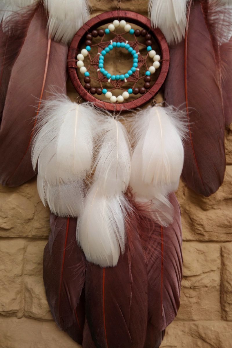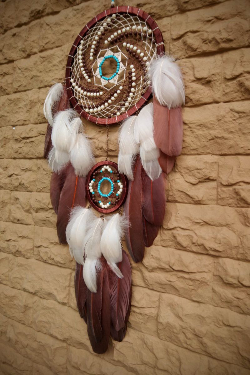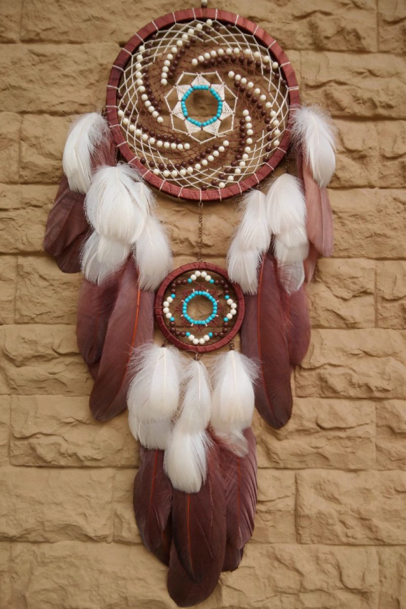Ловець снів Леді Шарлотта Ловець снів в коричневому і бежевому кольорі з невеликою бірюзовою родзинкою стане цікавим подарунком, здивує і порадує, прикрасить будь-який інтер'єр. Даруйте тільки приємні емоції! А ловець снів подарує самі солодкі сни.