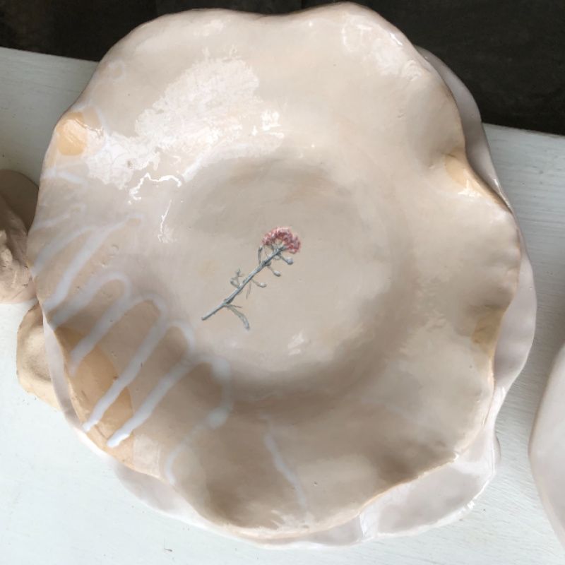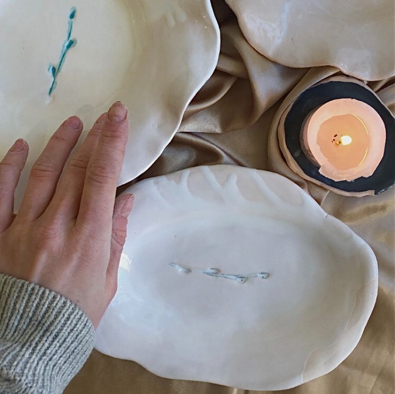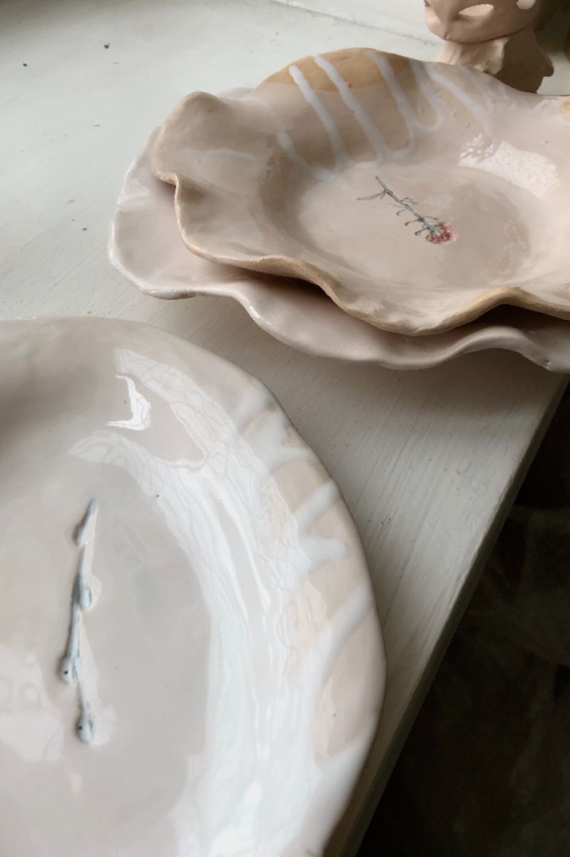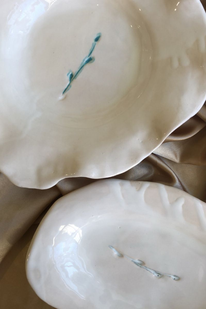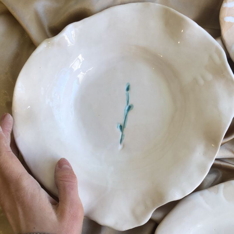 Керамічна тарілка ручної роботи. Ліплення, харчова матова полива.