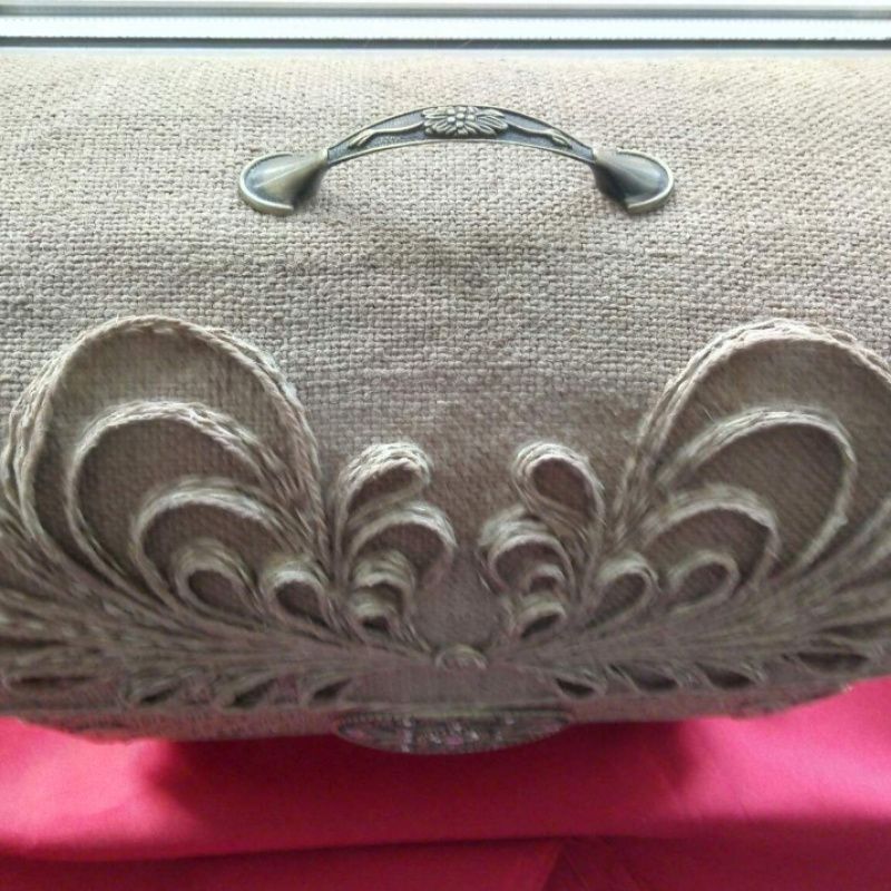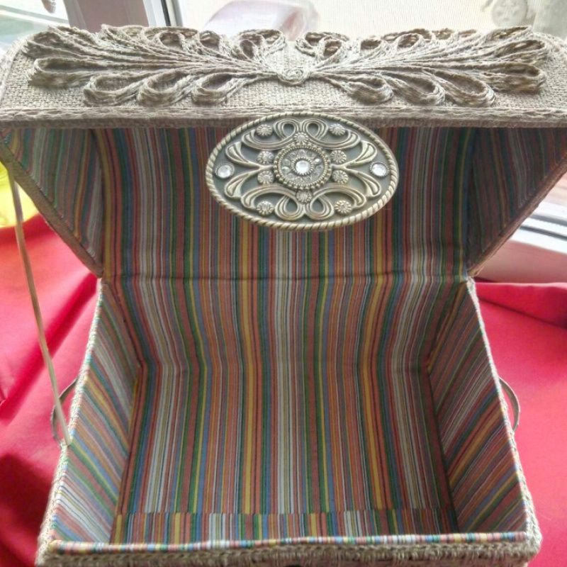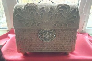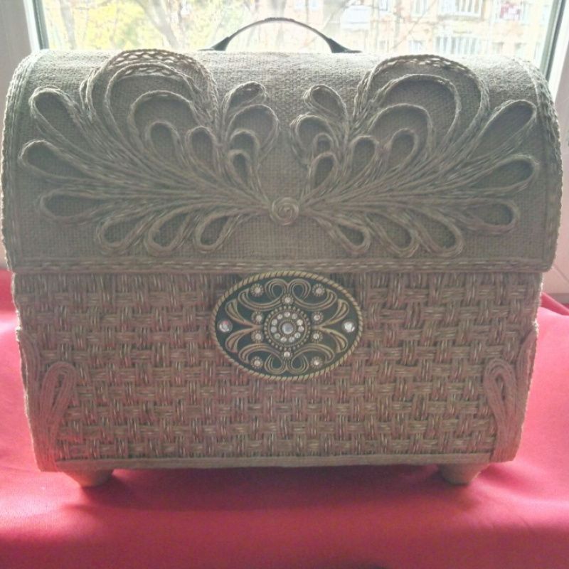 Скринька виготовлена в техніці джутова філігрань.