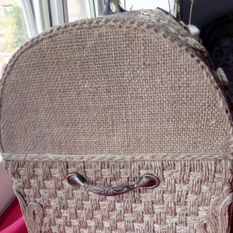 Усередині натуральна тканина. Можна використовувати для зберігання всяких дрібниць або як хлібницю.