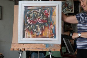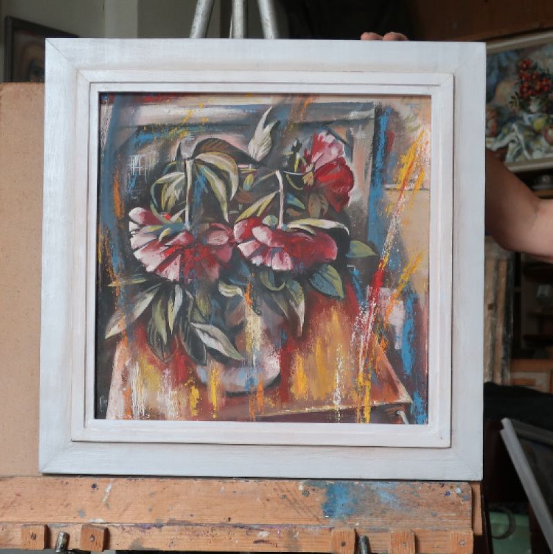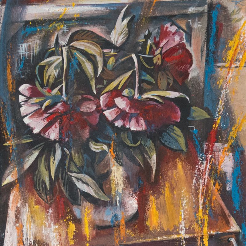 Півонії, 40х40, 1992 картон, темпера Картина Художника Поддубко Костянтина Художник-живописець. Член Національної спілки художників України з 1995 р. У 1998 та 2000 роках призер у номінації «Людина та море» Одеській бієнале «Марина». У 2010 році дипломант виставки камерної акварелі THE FIRST WATERCOLOR BIENNALE у Белграді та VIII бієнале камерної акварелі у Сімферополі. Бере участь у обласних, всеукраїнських та міжнародних виставках із 1988 року. У 1992 і 2009 роках проводив персональні виставки в Нікополі, а 2000-го в Запоріжжі. Твори зберігаються у Нікопольському історичному музеї, Сімферопольському художньому музеї, приватних колекціях в Україні та за кордоном.